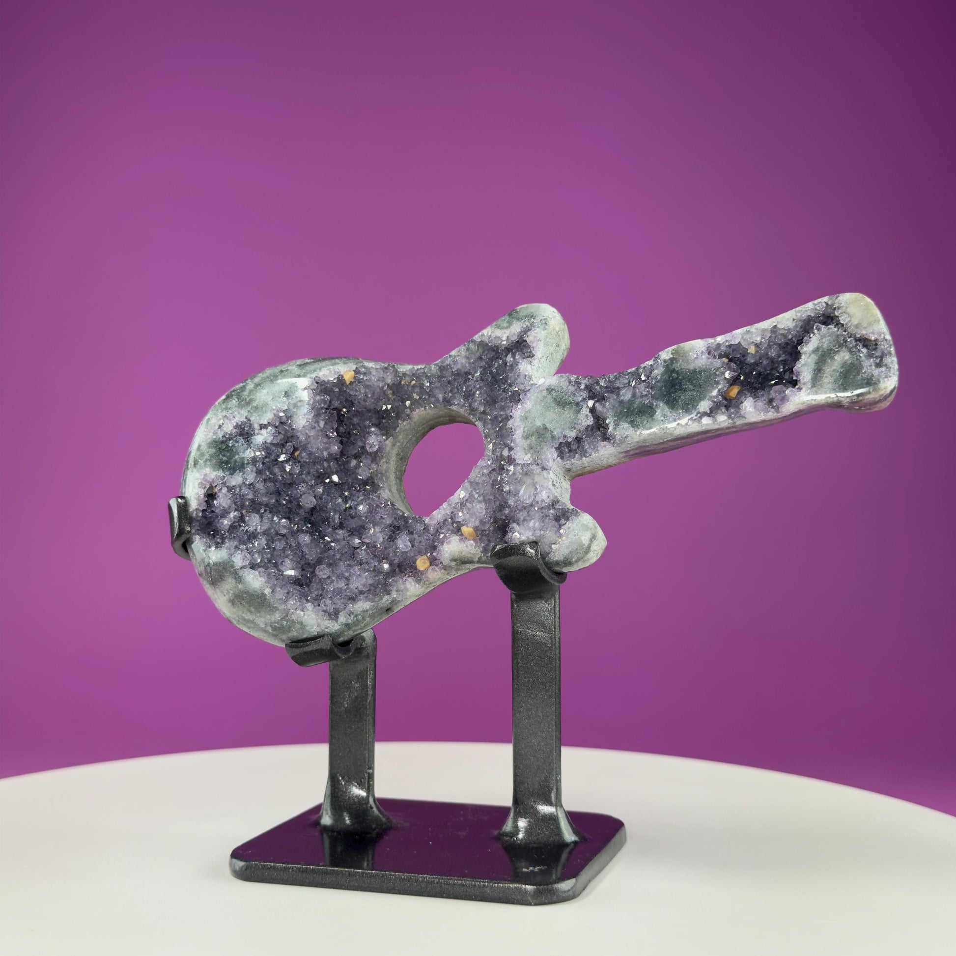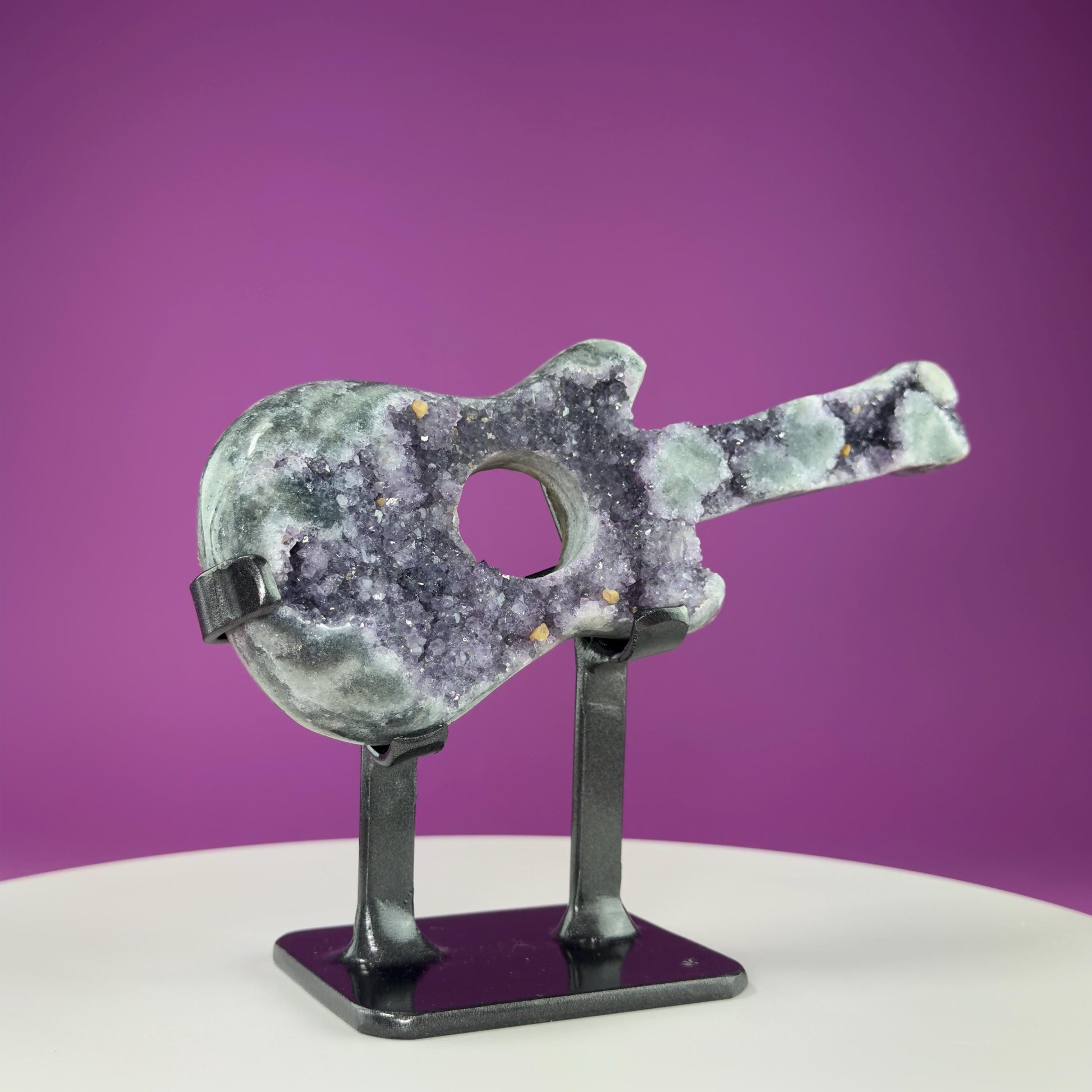 Amethyst Guitar Carving (Uruguay) (Includes Heavy Black Metal Custom Stand), Collectors Piece