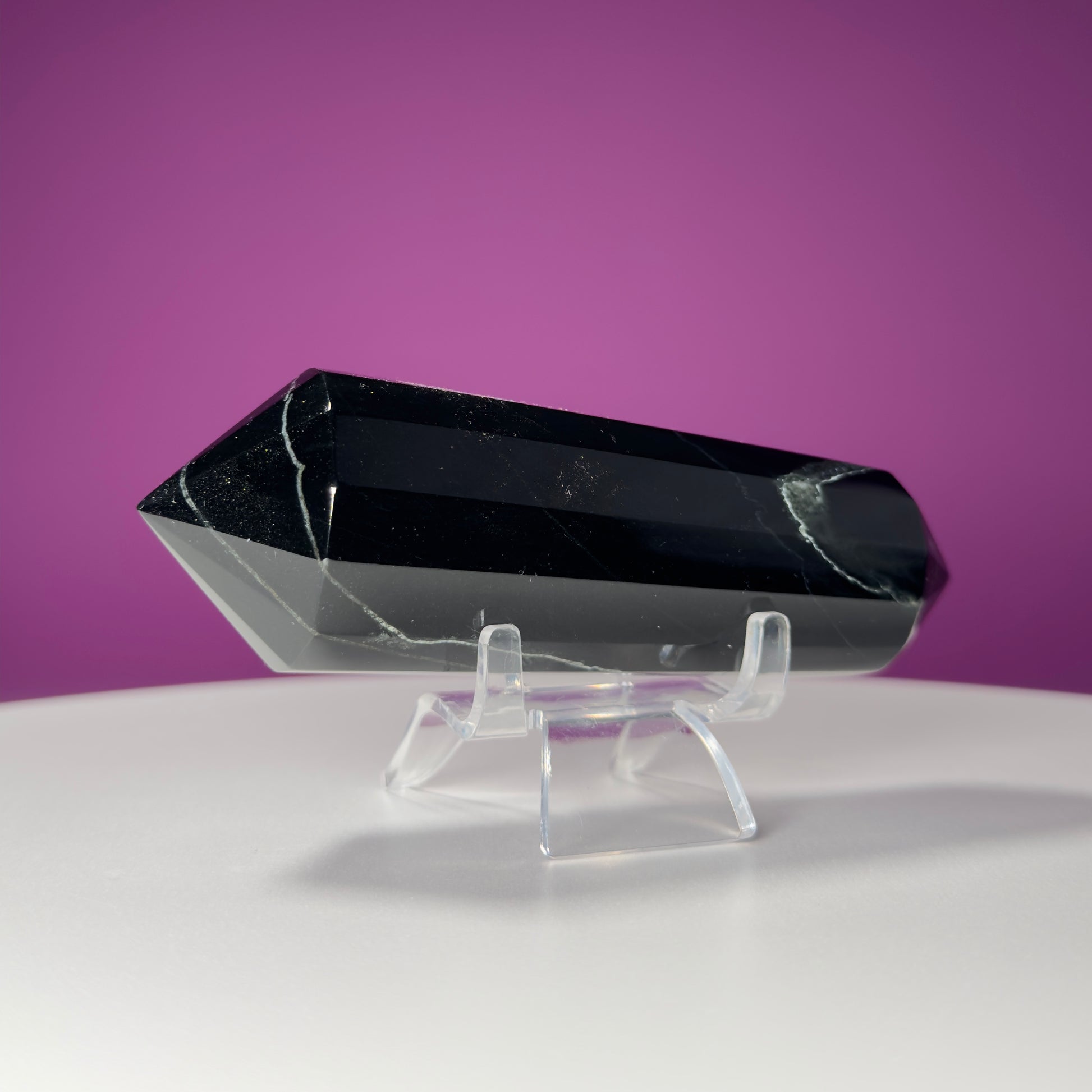 Black nephrite jade is a powerful stone that resonates deeply with the root chakra, grounding its user and enhancing feelings of stability and security. Known for its protective qualities, this crystal shields against negative energies and promotes emotional balance. By aligning the root chakra, black nephrite jade helps to dispel fear, instilling a sense of courage and resilience. This grounding effect not only strengthens one‘s connection to the Earth but also fosters a sense of personal power and perseverance, making it an ideal companion for those seeking to build a solid foundation in their spiritual and everyday lives. A vogel is used to amplify and focus thoughts and energy.
