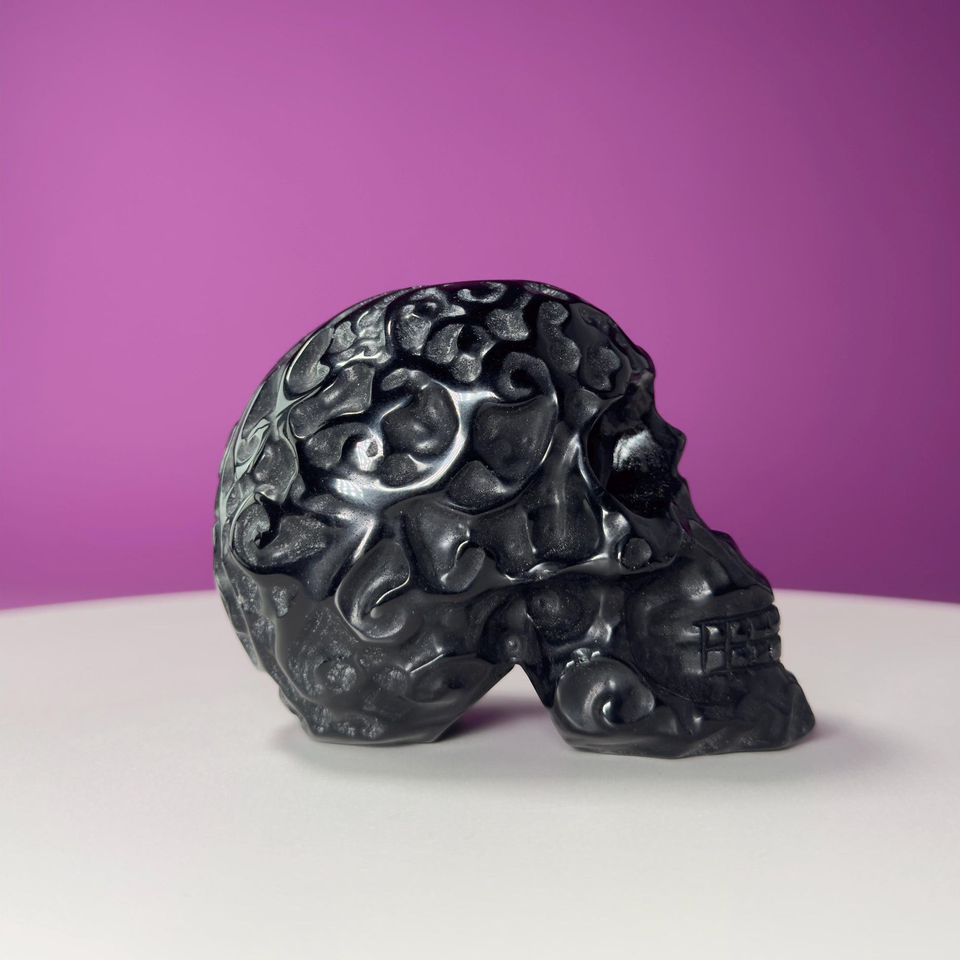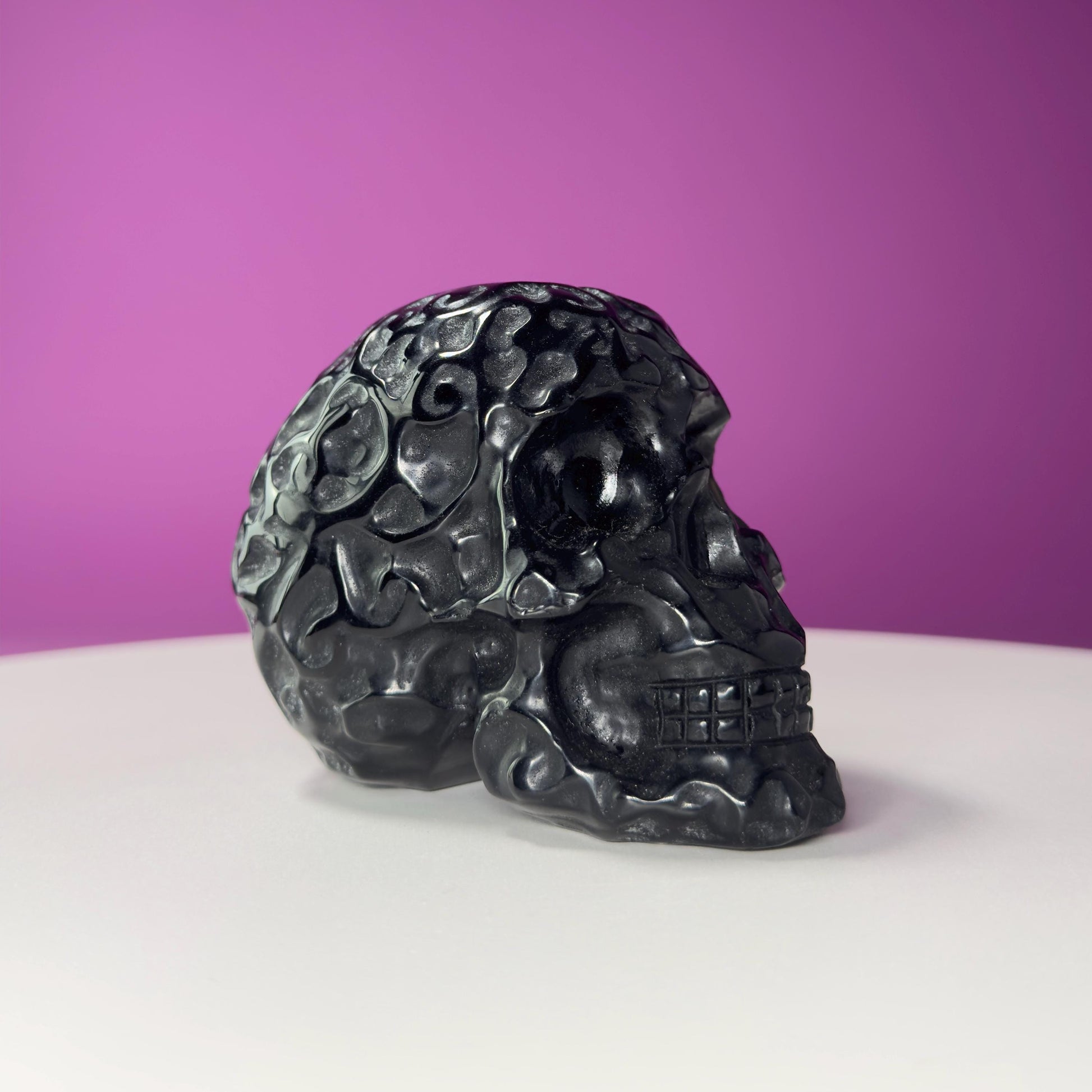 Black Obsidian Carved Skull, Protective Crystal Carving, Grounding Stone Decor