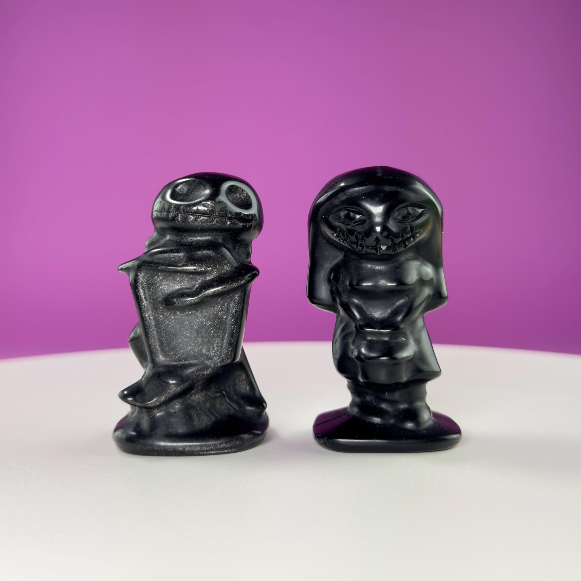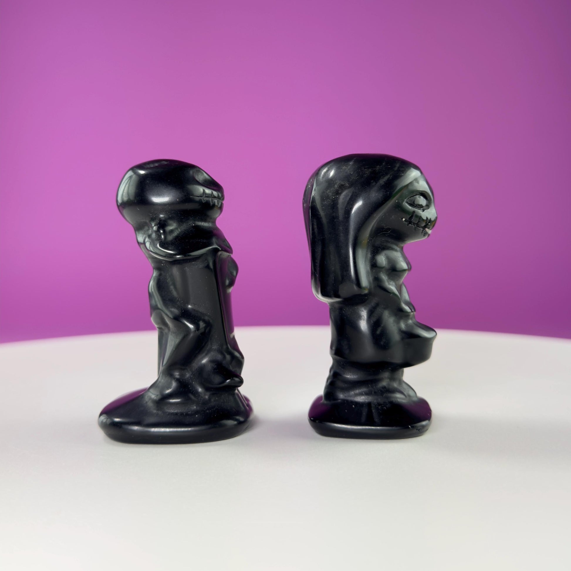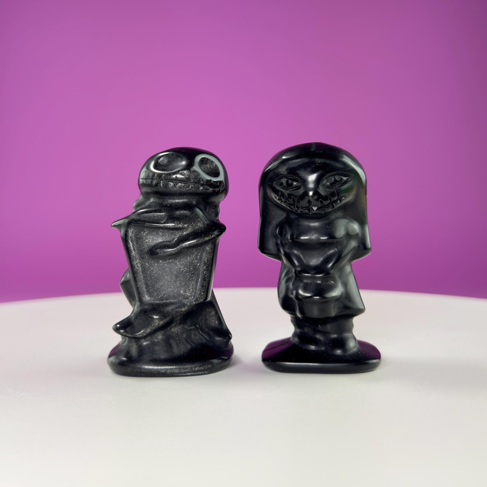 Display this exquisite carving on your altar, desk, or bookshelf to celebrate a love that was simply meant to be, while benefiting from Black Obsidian‘s protective energy. It‘s a wonderful gift for a loved one or a special treat for yourself. Explore this unique piece today and let the enchanting world of Jack and Sally fill your space