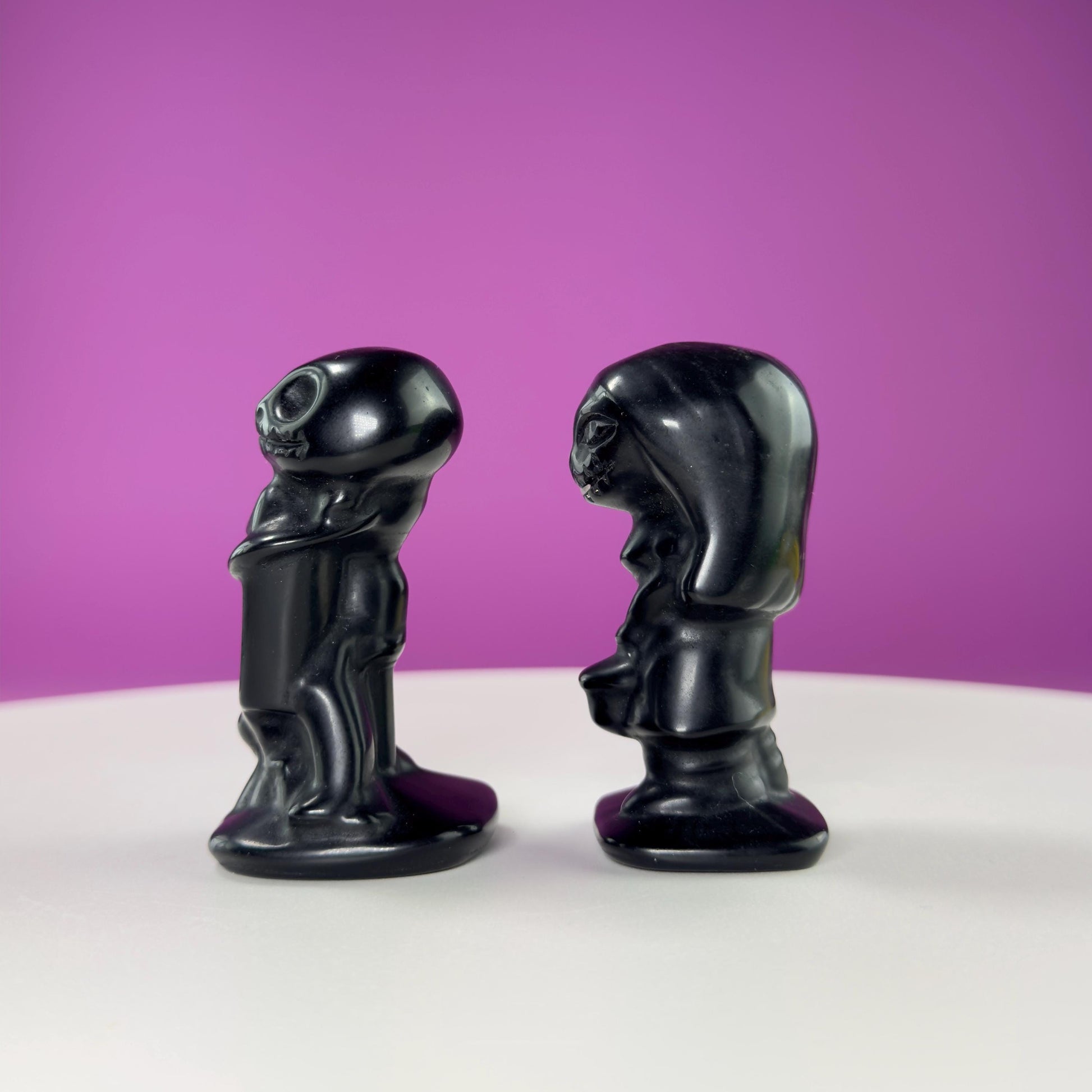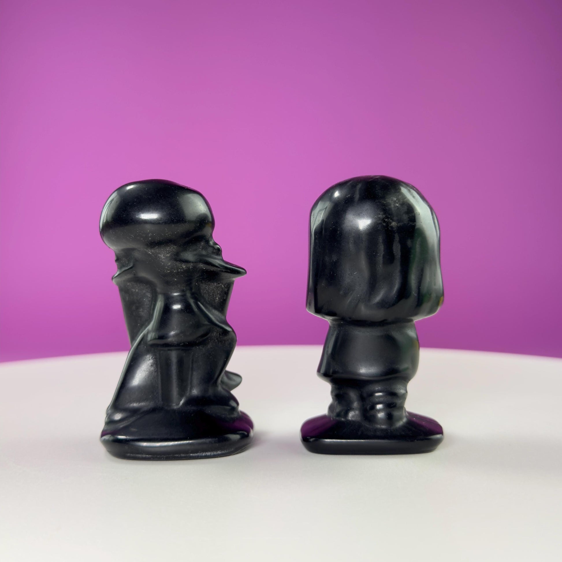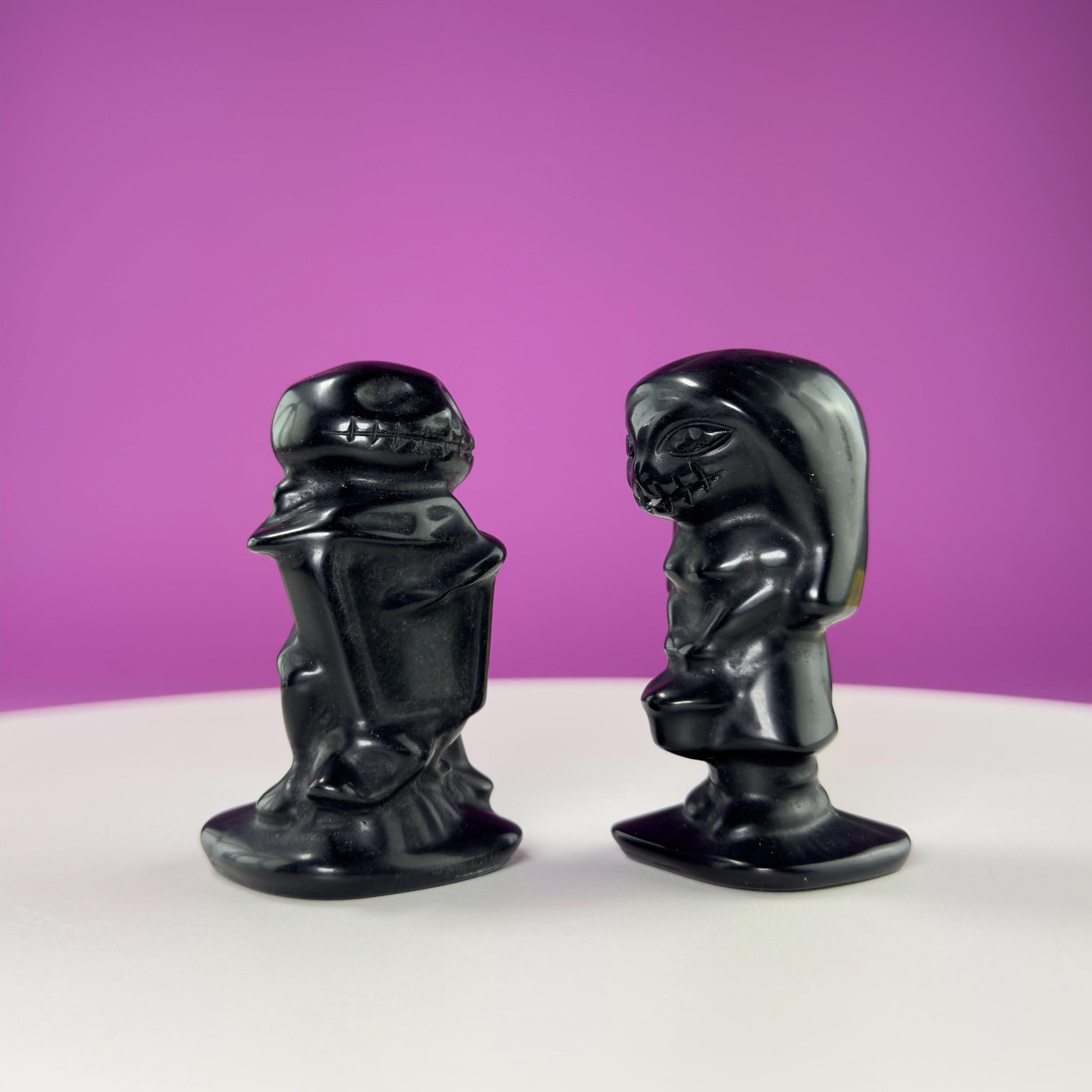 Display this exquisite carving on your altar, desk, or bookshelf to celebrate a love that was simply meant to be, while benefiting from Black Obsidian‘s protective energy. It‘s a wonderful gift for a loved one or a special treat for yourself. Explore this unique piece today and let the enchanting world of Jack and Sally fill your space