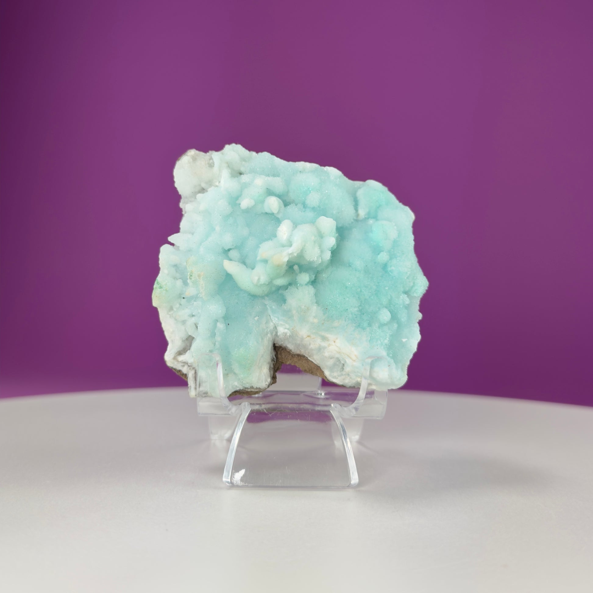 This listing is for one (1) natural Blue Aragonite specimen and Acrylic Stand. The one in the photograph is the one you receive.