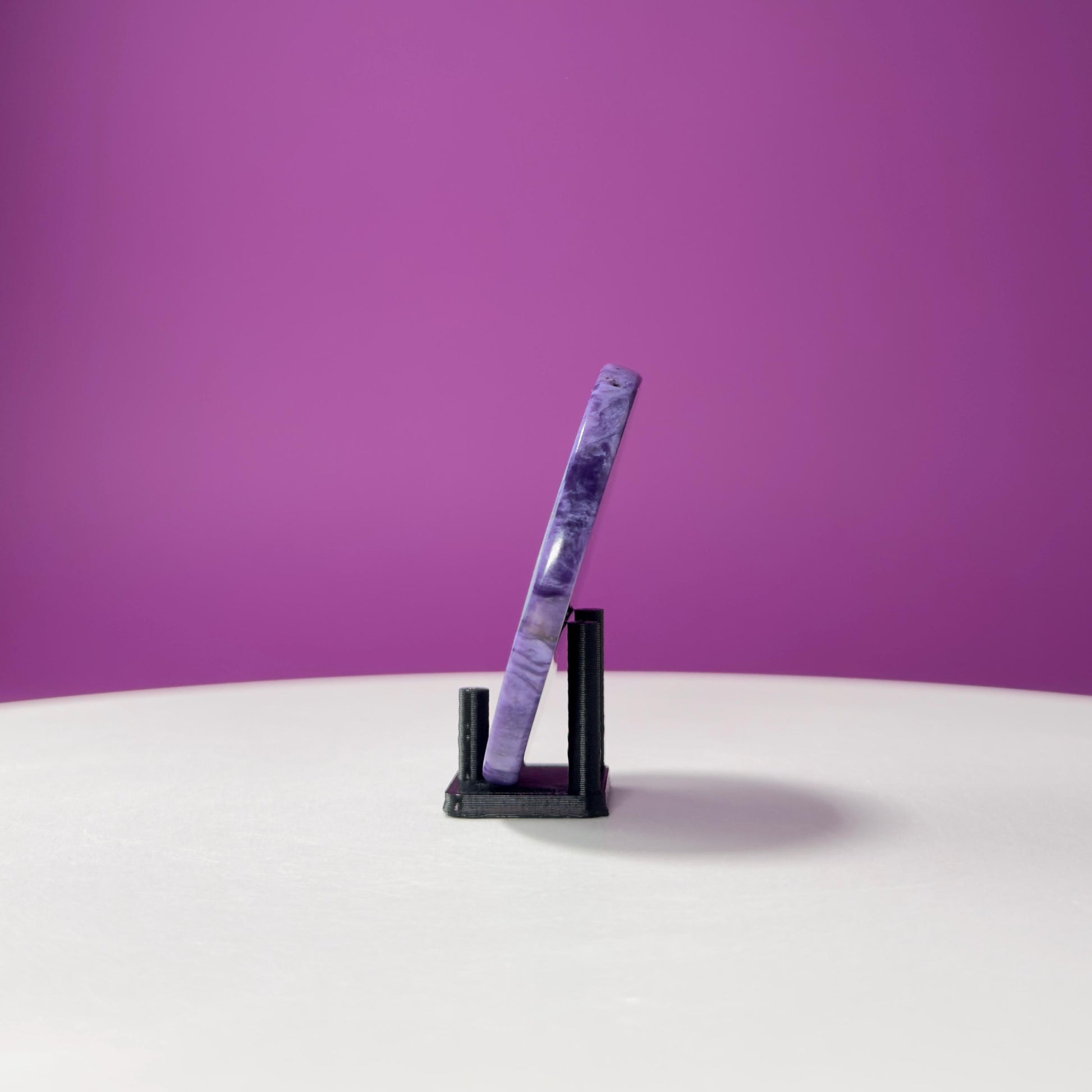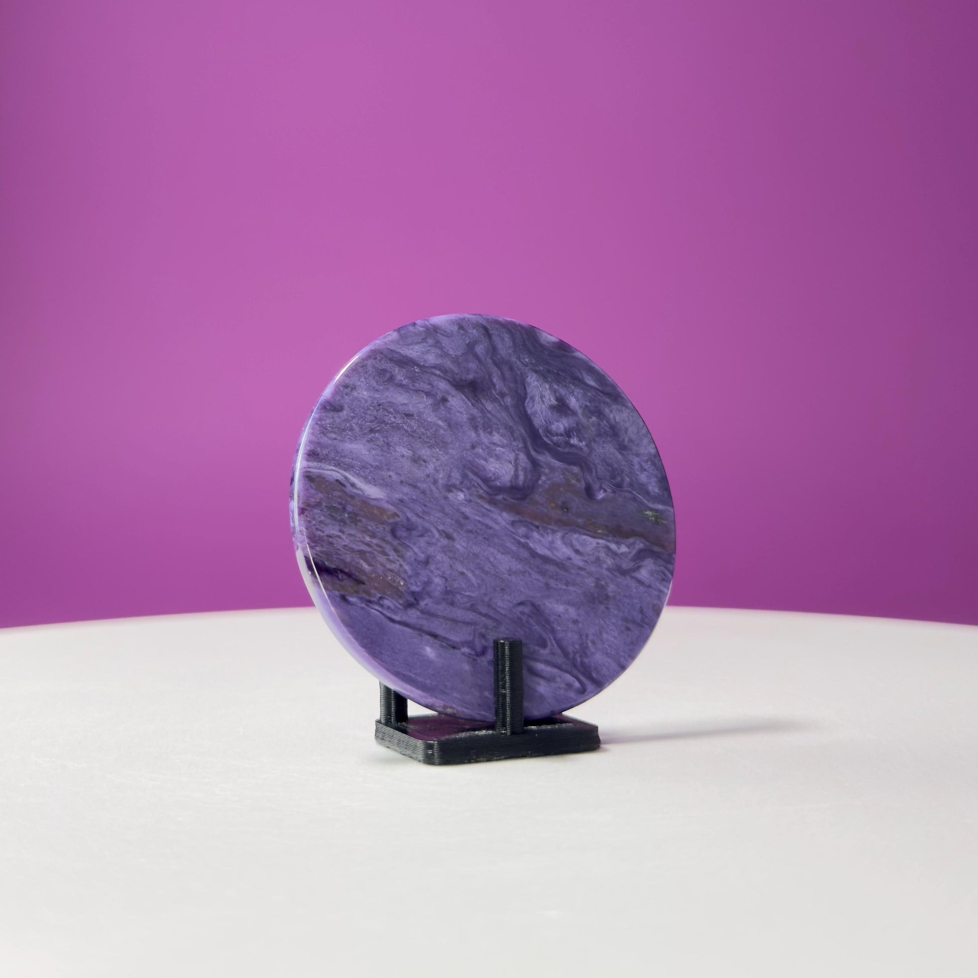 This listing is for one (1) Charoite Energy Disc and black stand. The one in the photograph is the one you receive.