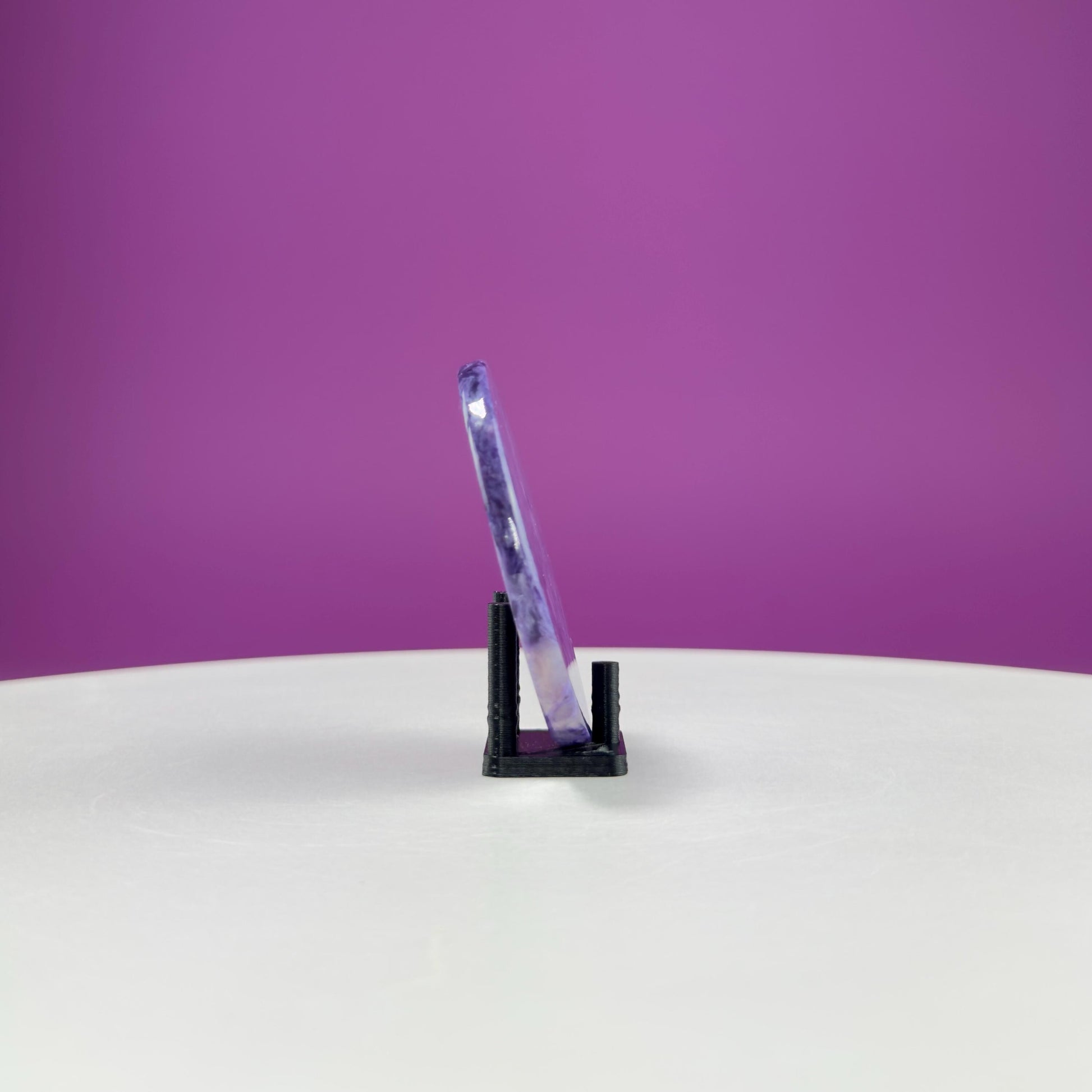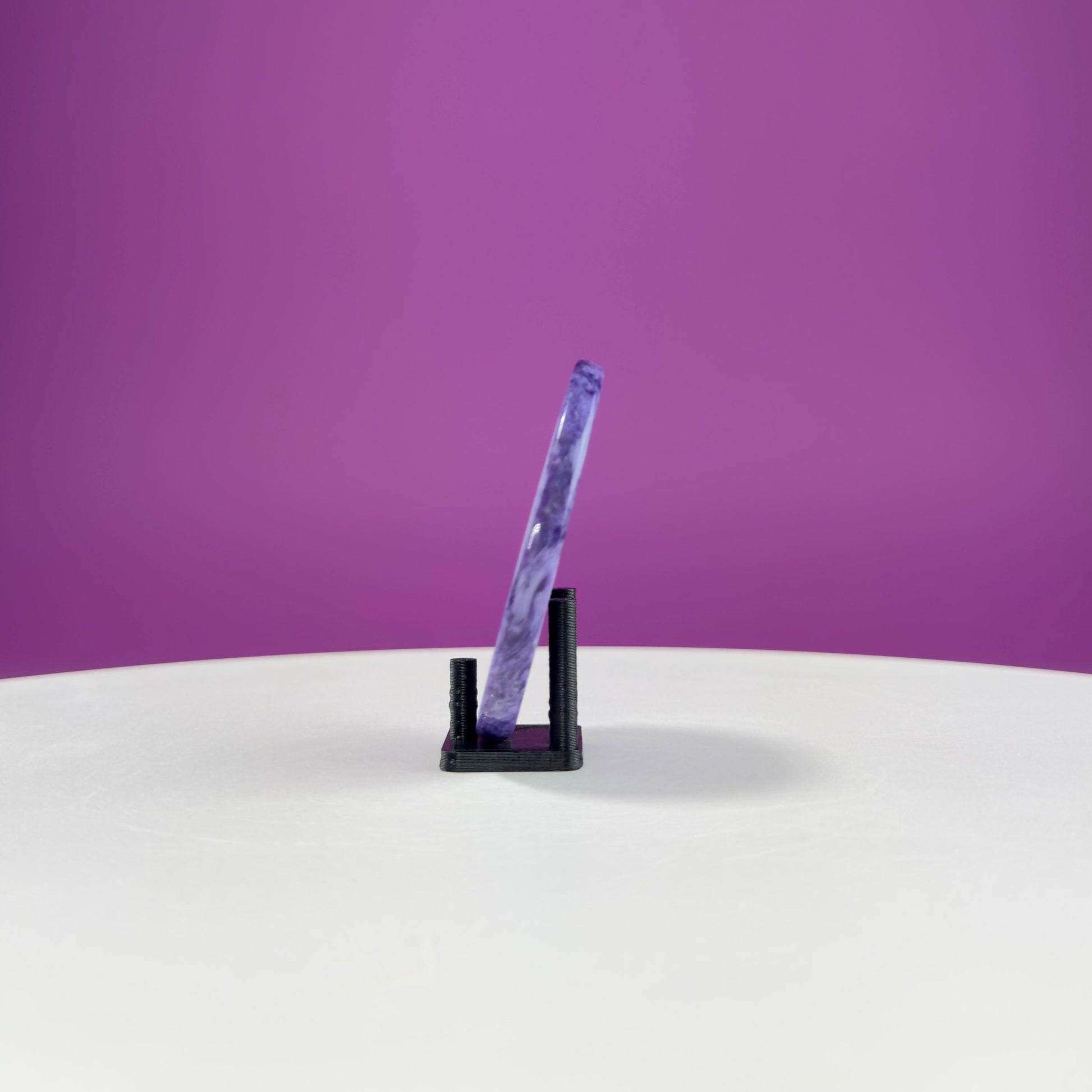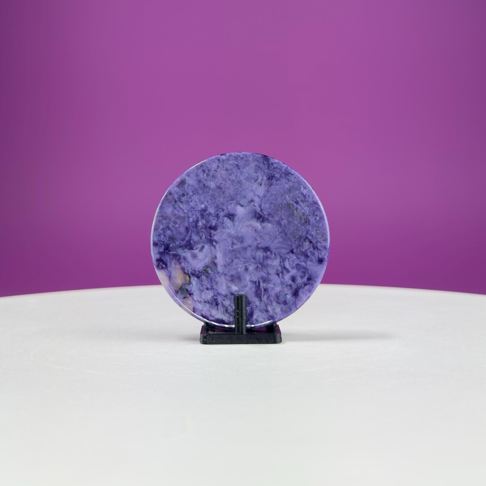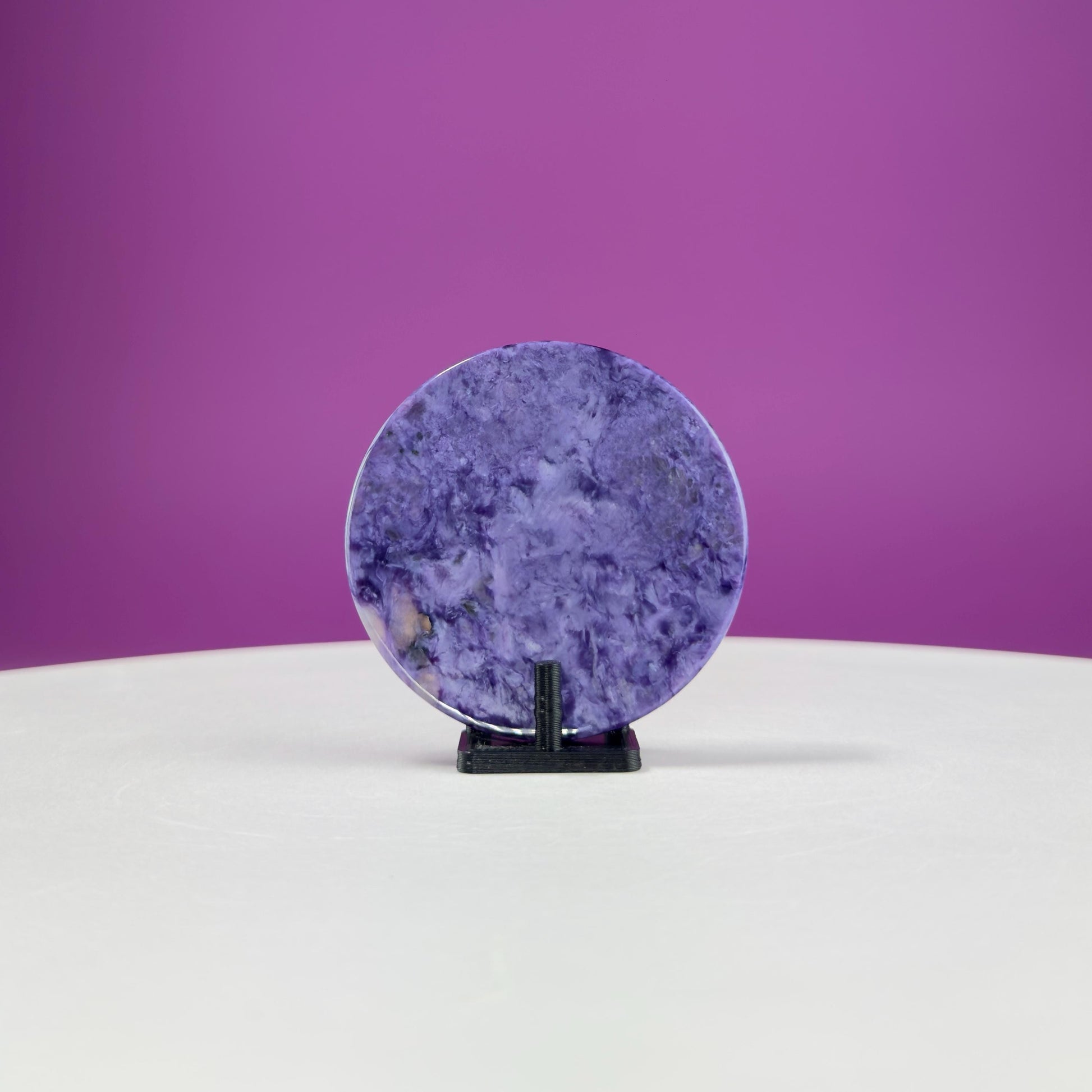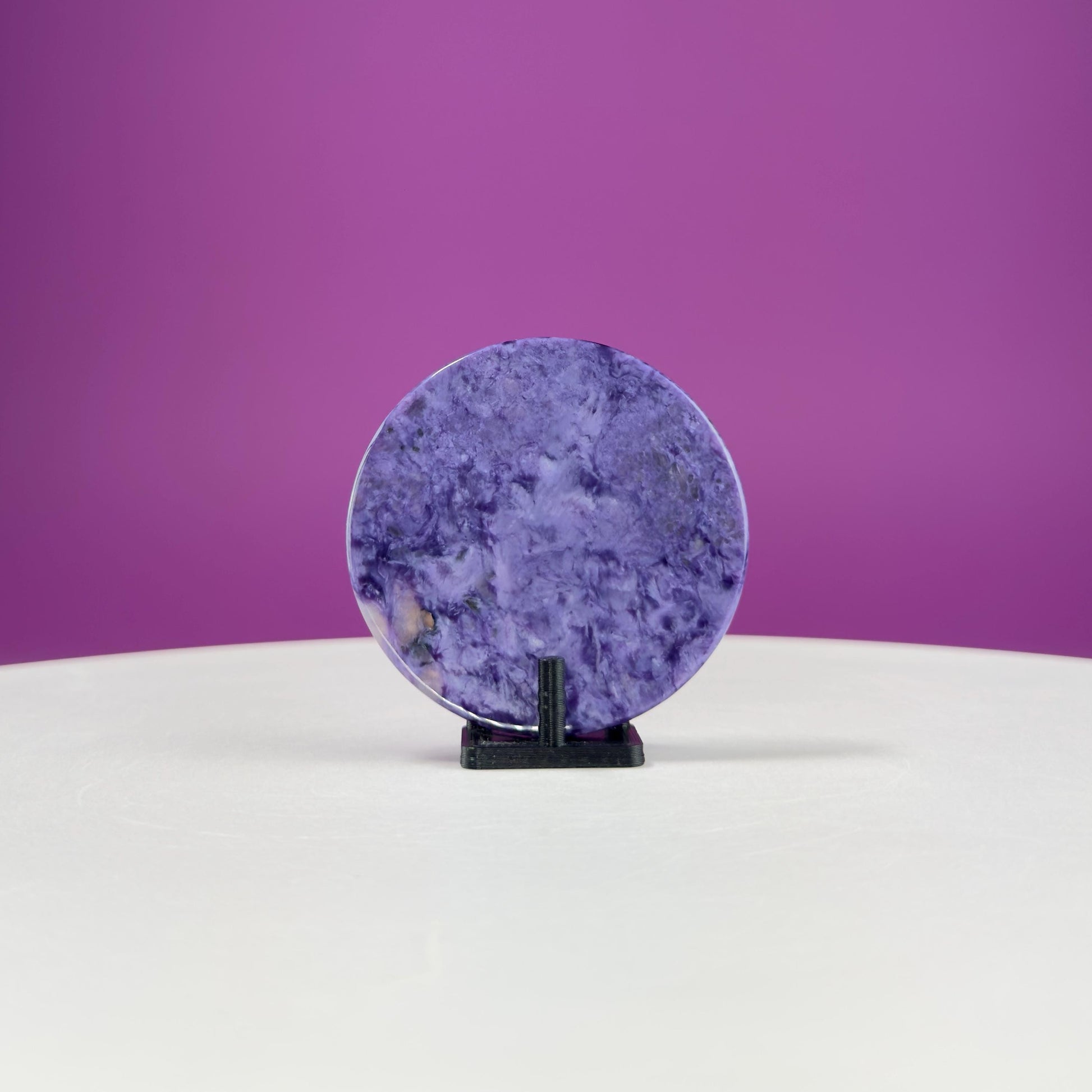 This listing is for one (1) Charoite Energy Disc and black stand. The one in the photograph is the one you receive.