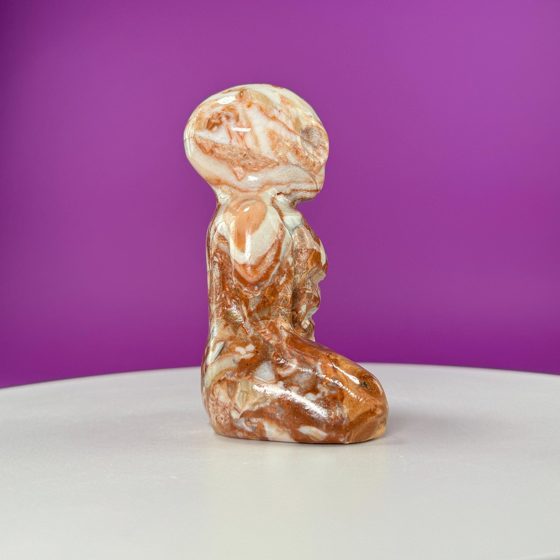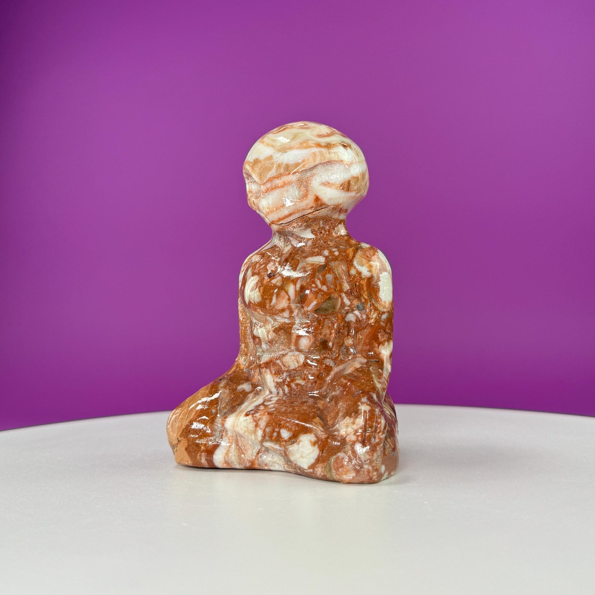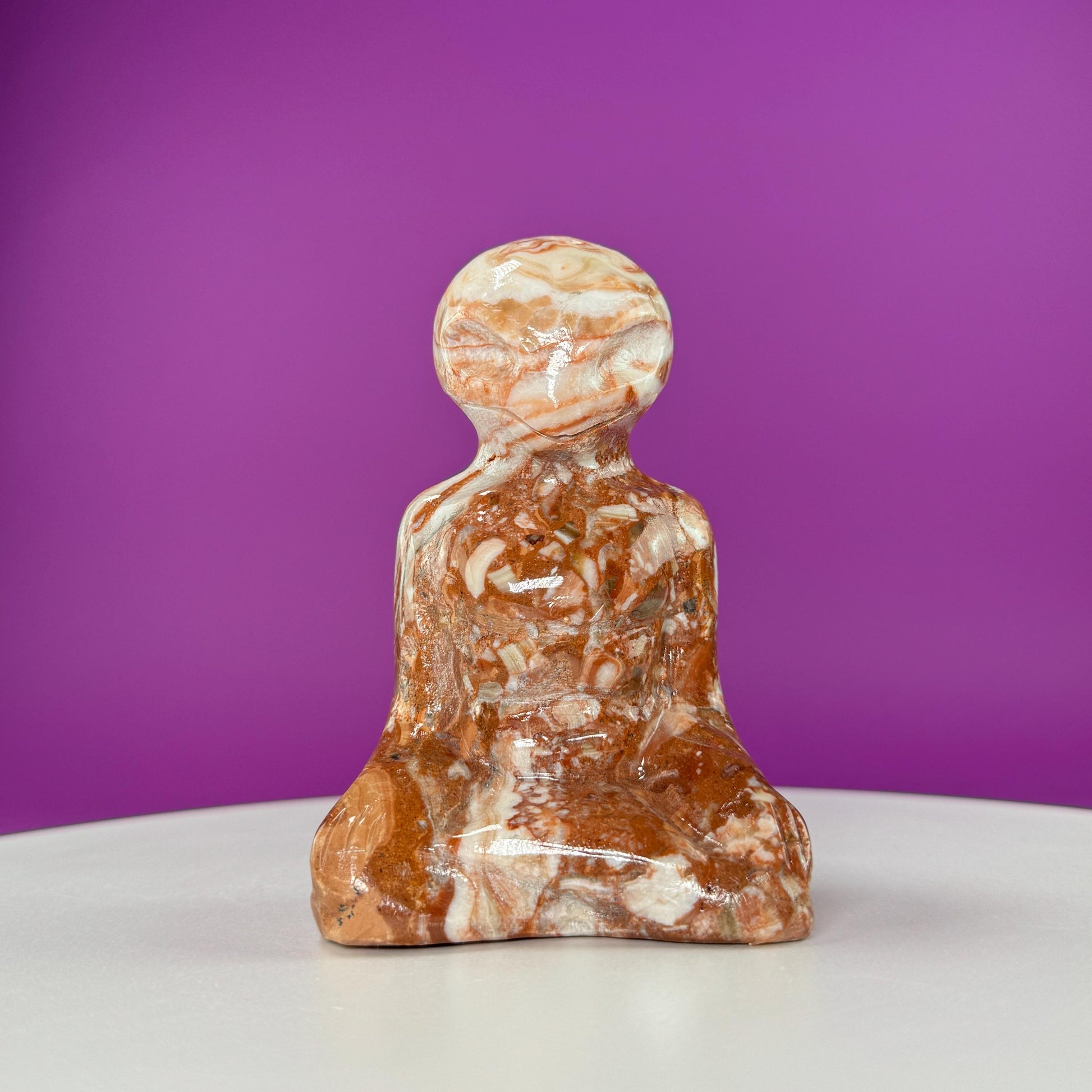 This listing is for one (1) Chocolate Calcite Yoga Alien carving. The one in the photograph is the one you receive.