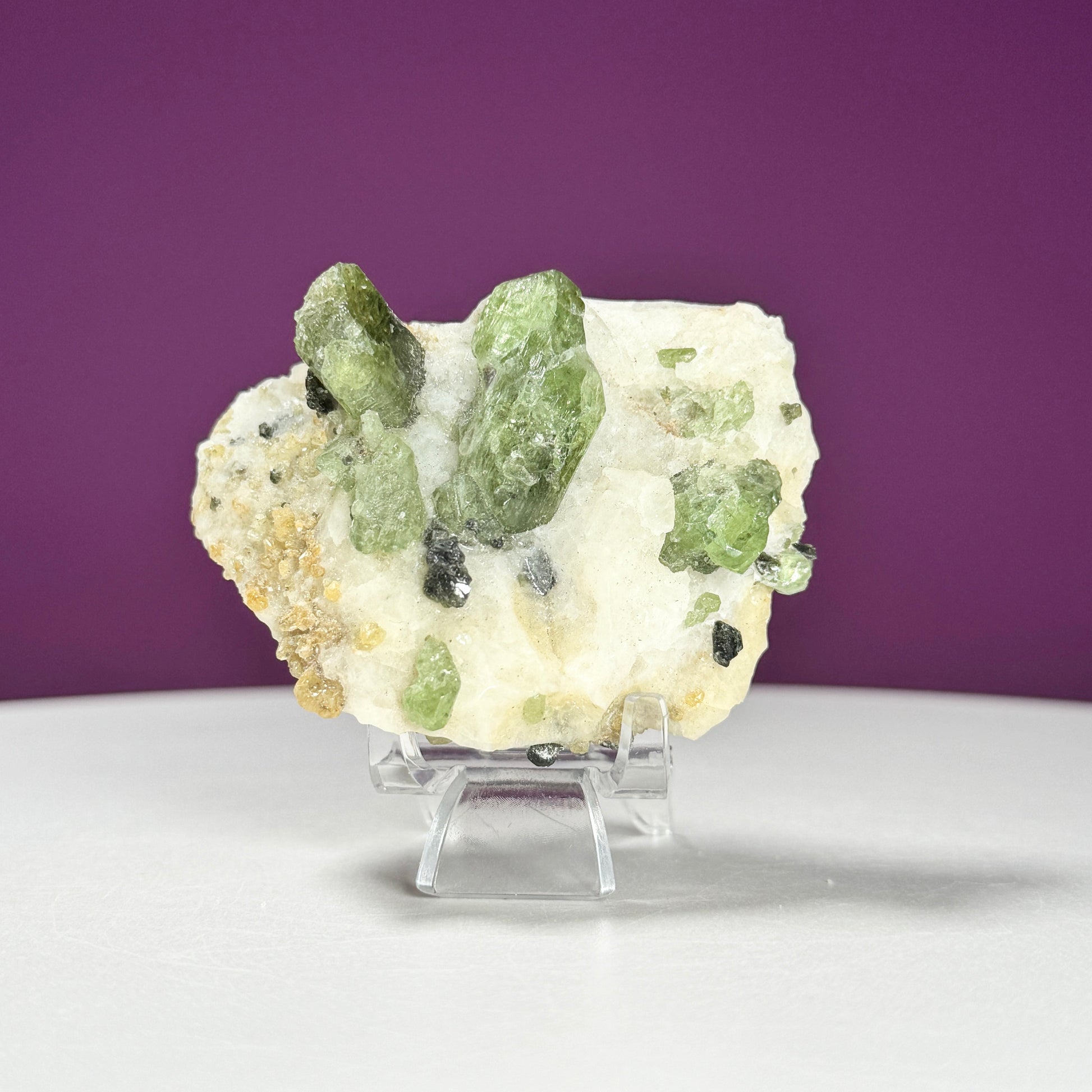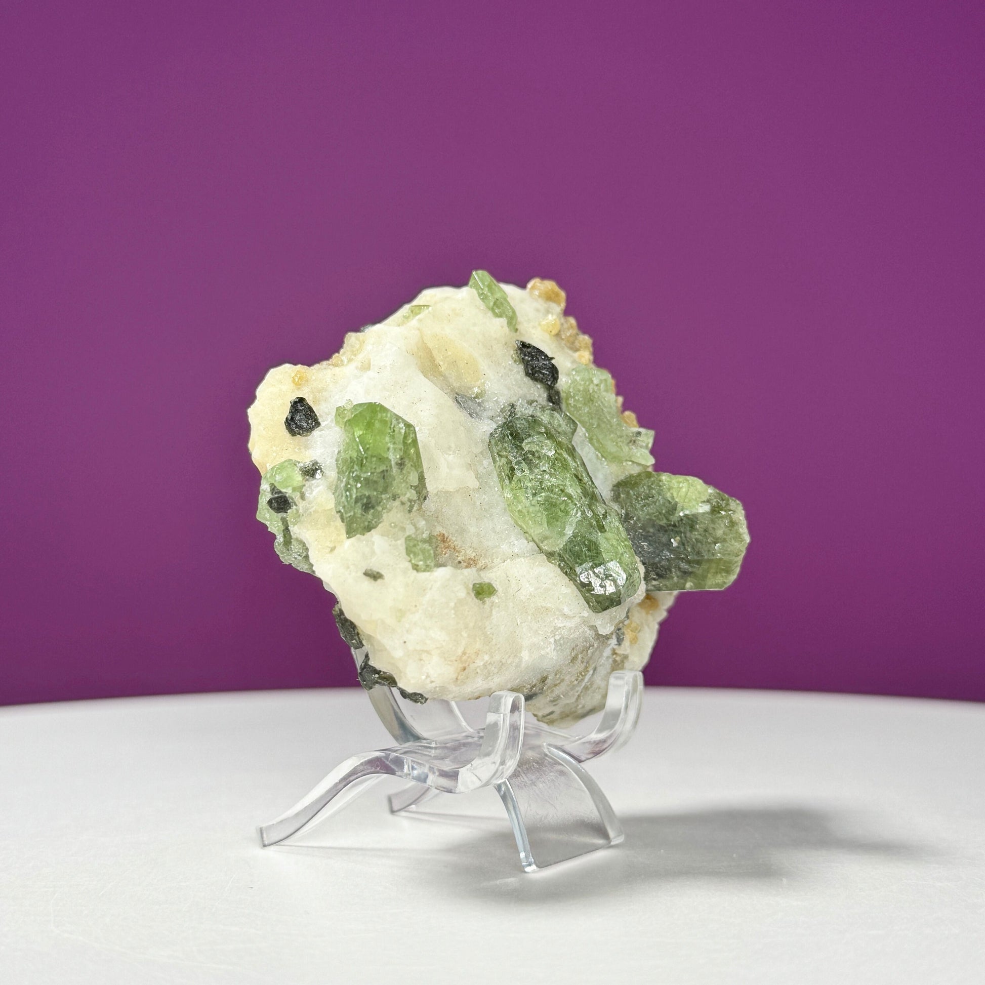 This listing is for one (1) Diopside Crystal Specimen and Acrylic Stand. The one in the photograph is the one you receive.