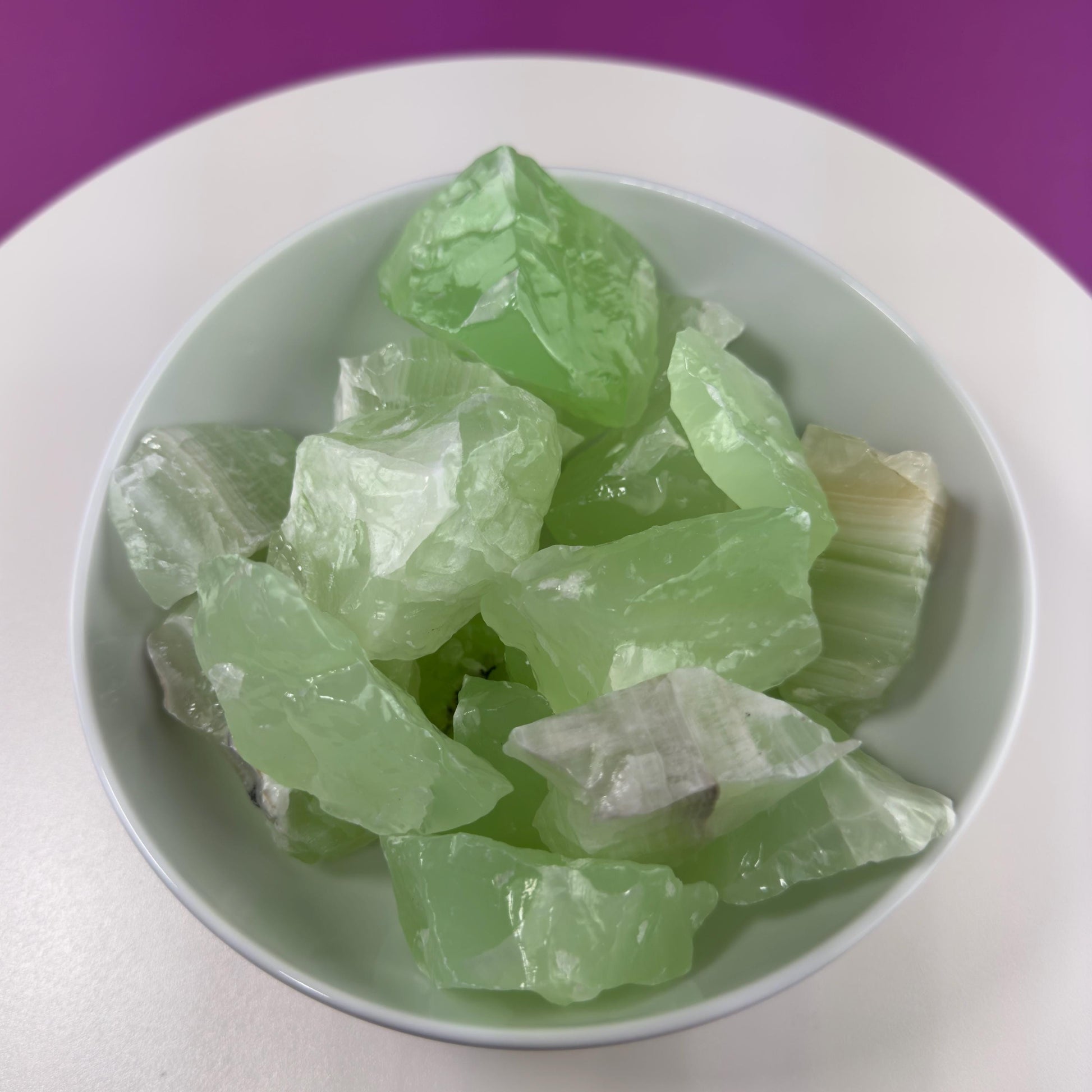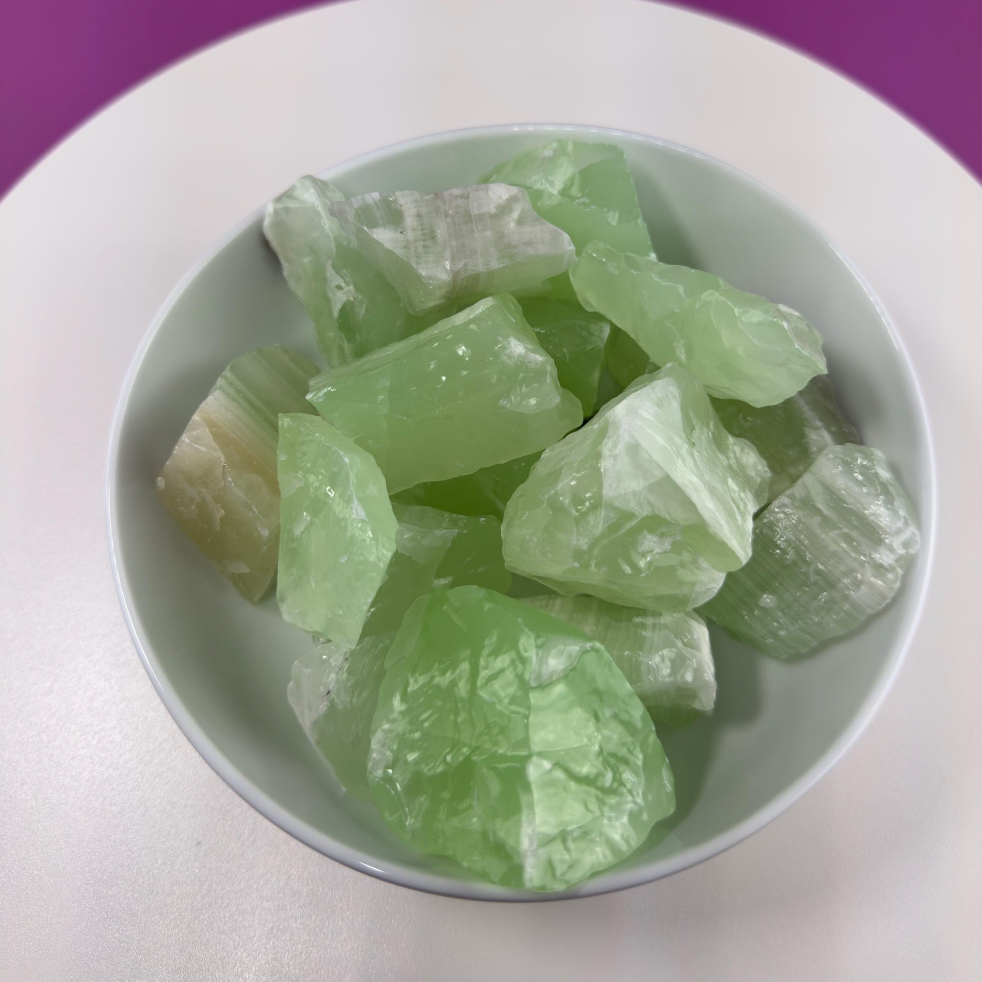 This listing is for one (1) Green Calcite Rough Stone. Choose your size, and the stone will be intuitively selected.