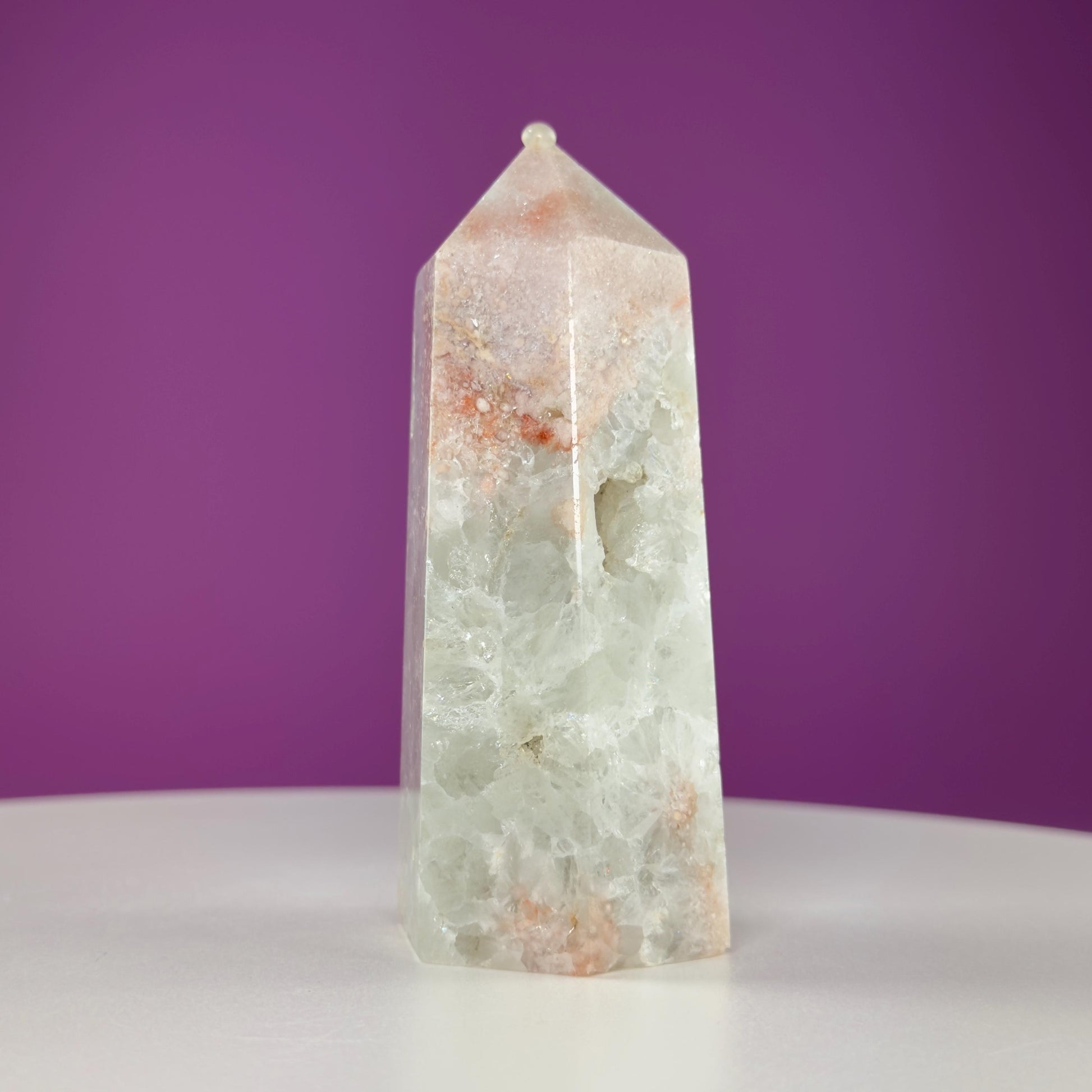 This Green Quartz Tower is unique, showcasing its own beautiful patterns and shades of green as well as pink. The smooth, polished finish feels wonderful to hold and makes it a striking addition to any crystal collection. Ready to open your heart and welcome abundance? Bring this incredible Green Quartz Tower home today.