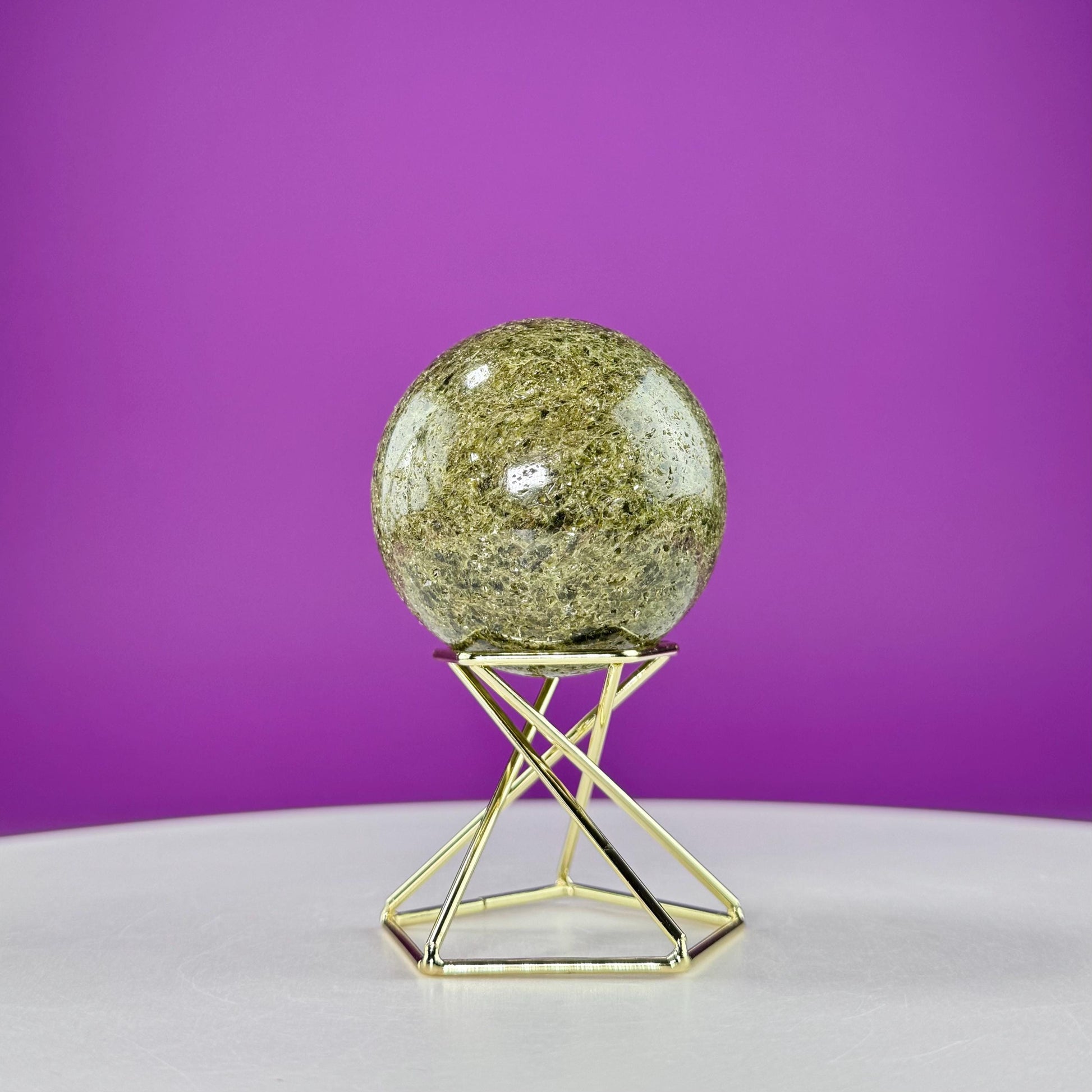 Green Tourmaline Sphere (Includes Gold Metal Display Stand)