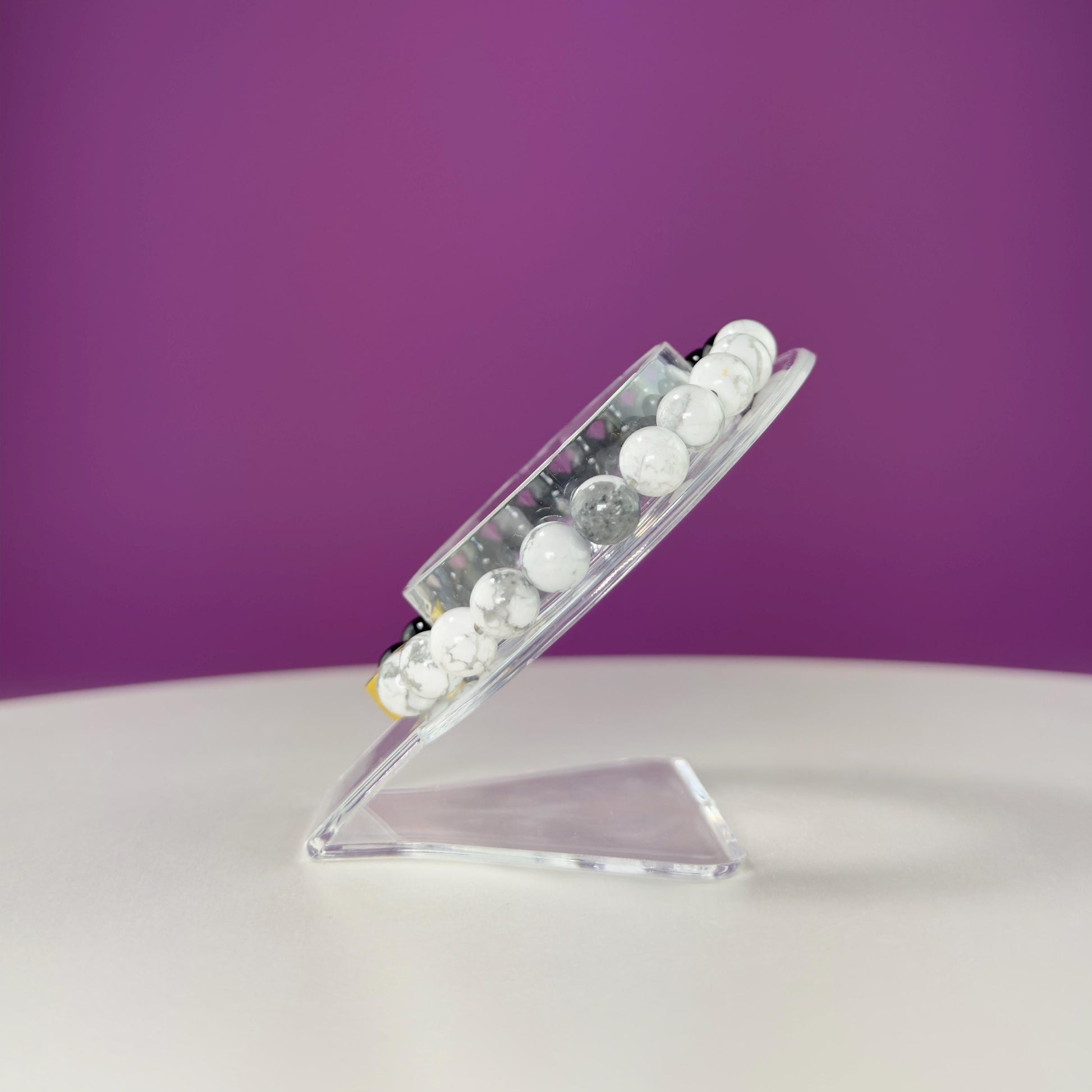 Find your balance with this stunning Howlite and Black Obsidian Bracelet! This beautiful piece of jewelry is more than just an accessory; it‘s a powerful tool for harmony and protection.