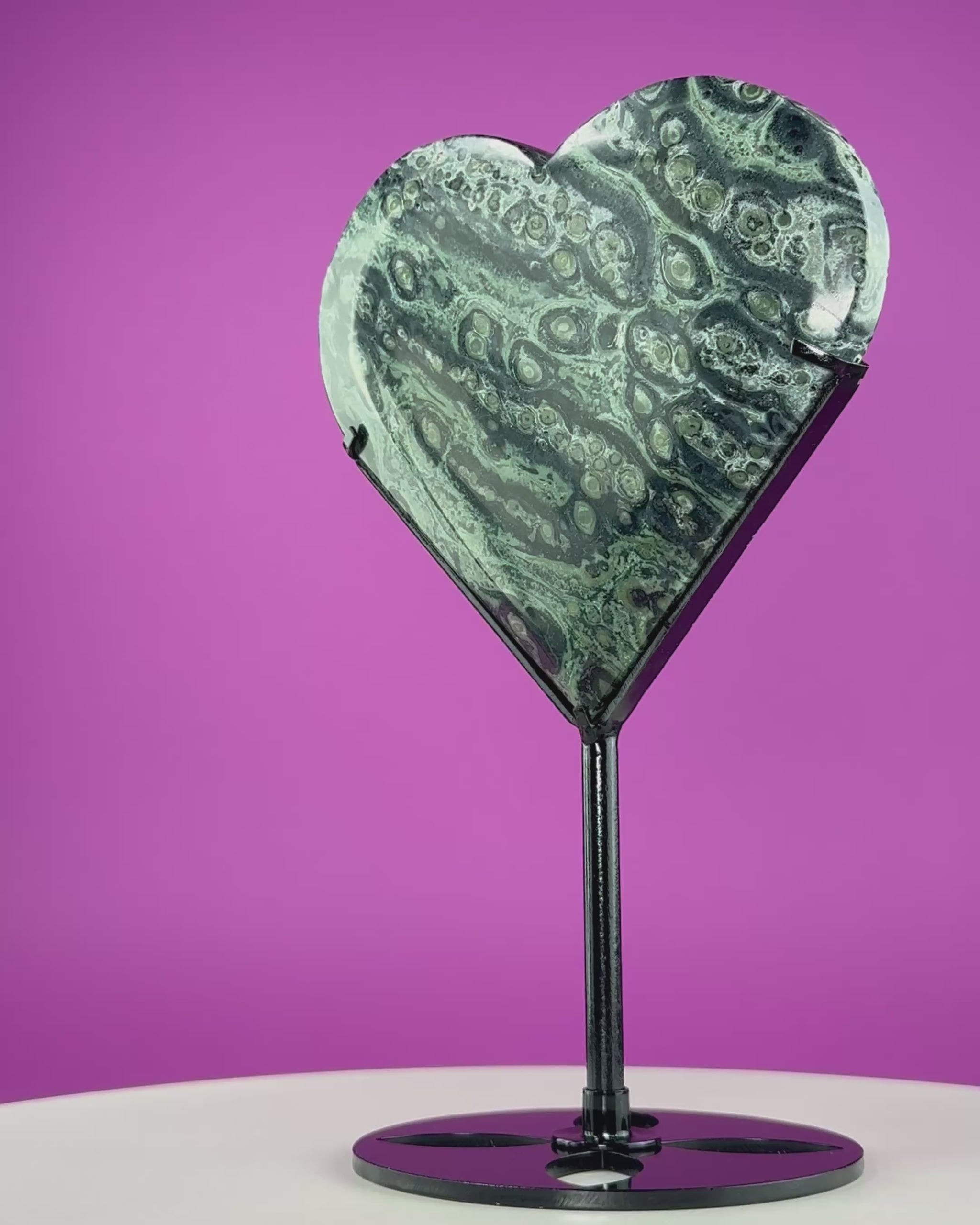 Kambaba Jasper Heart Carving (Includes Black Metal Stand)