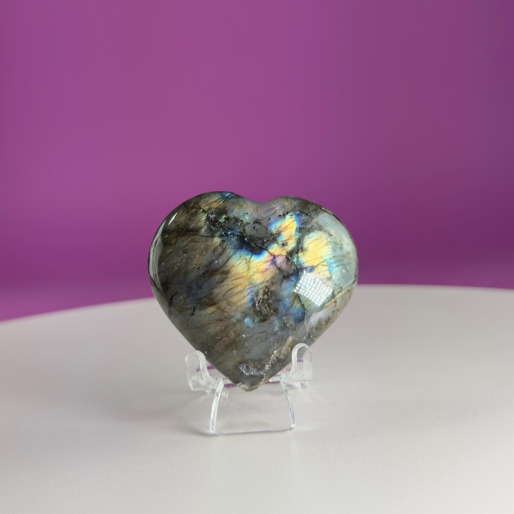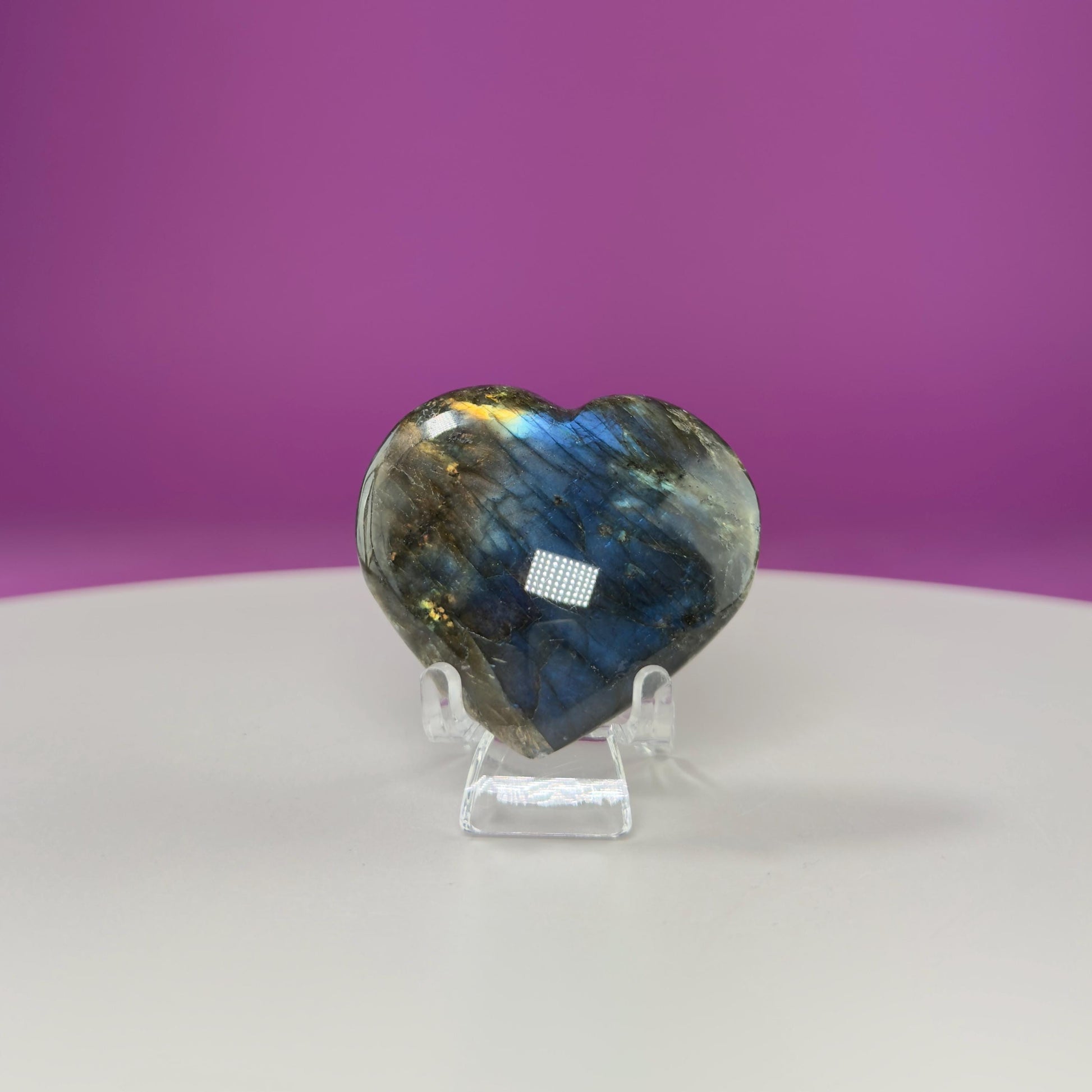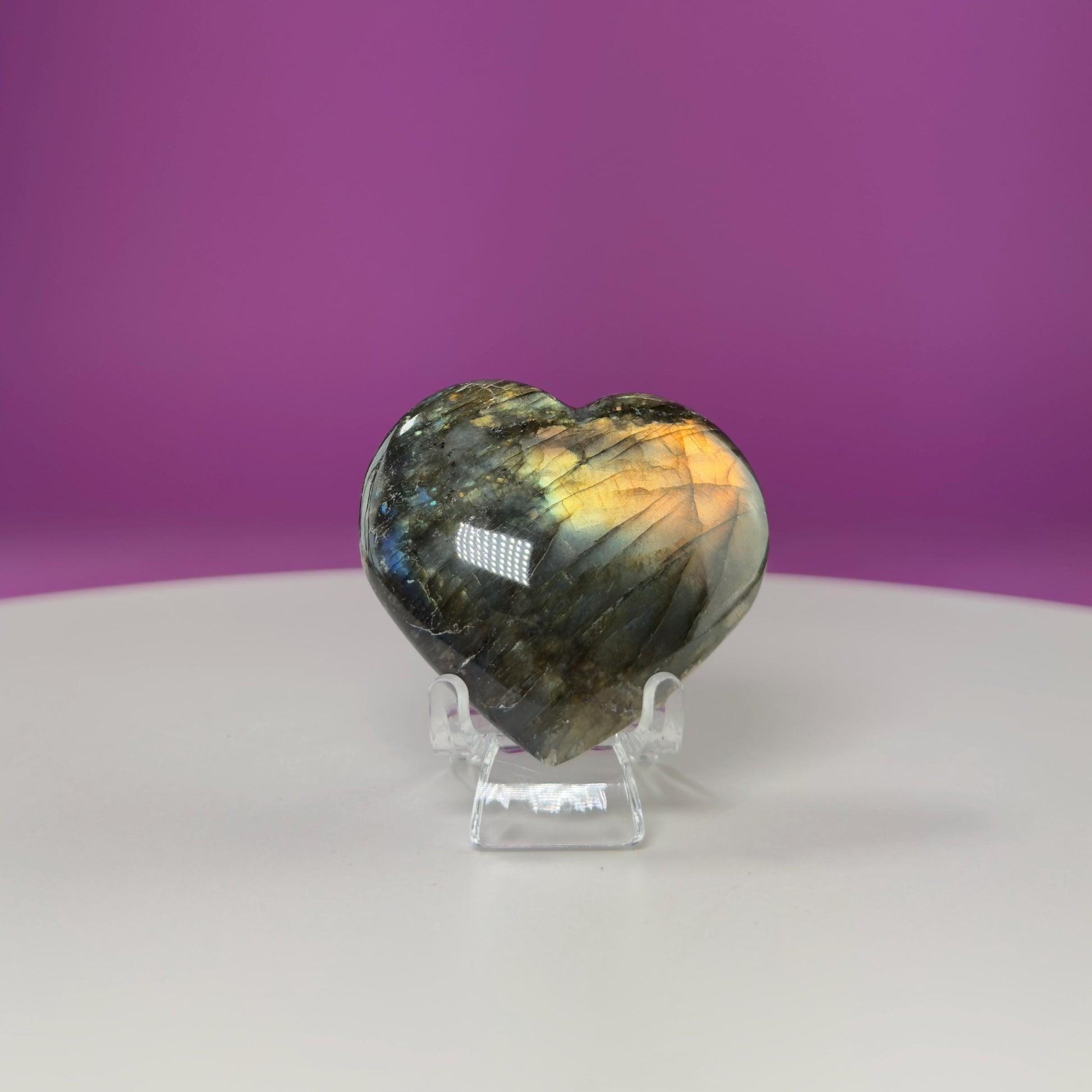 This listing is for one (1) polished Labradorite Heart. STAND NOT INCLUDED. FOR DISPLAY PURPOSE ONLY. The one in the photograph is the one you receive.