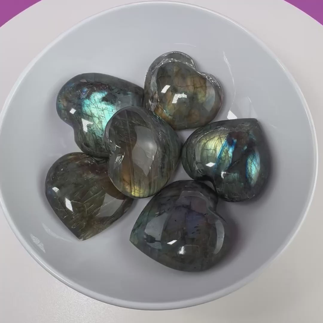 Labradorite Heart Carving, Flashy Labradorite