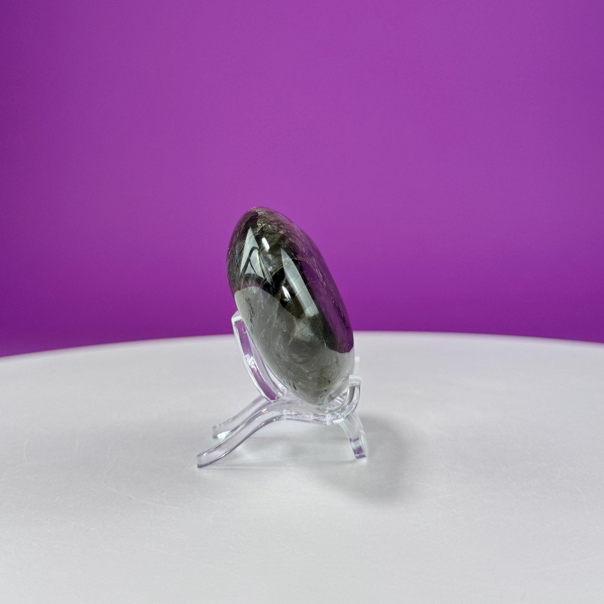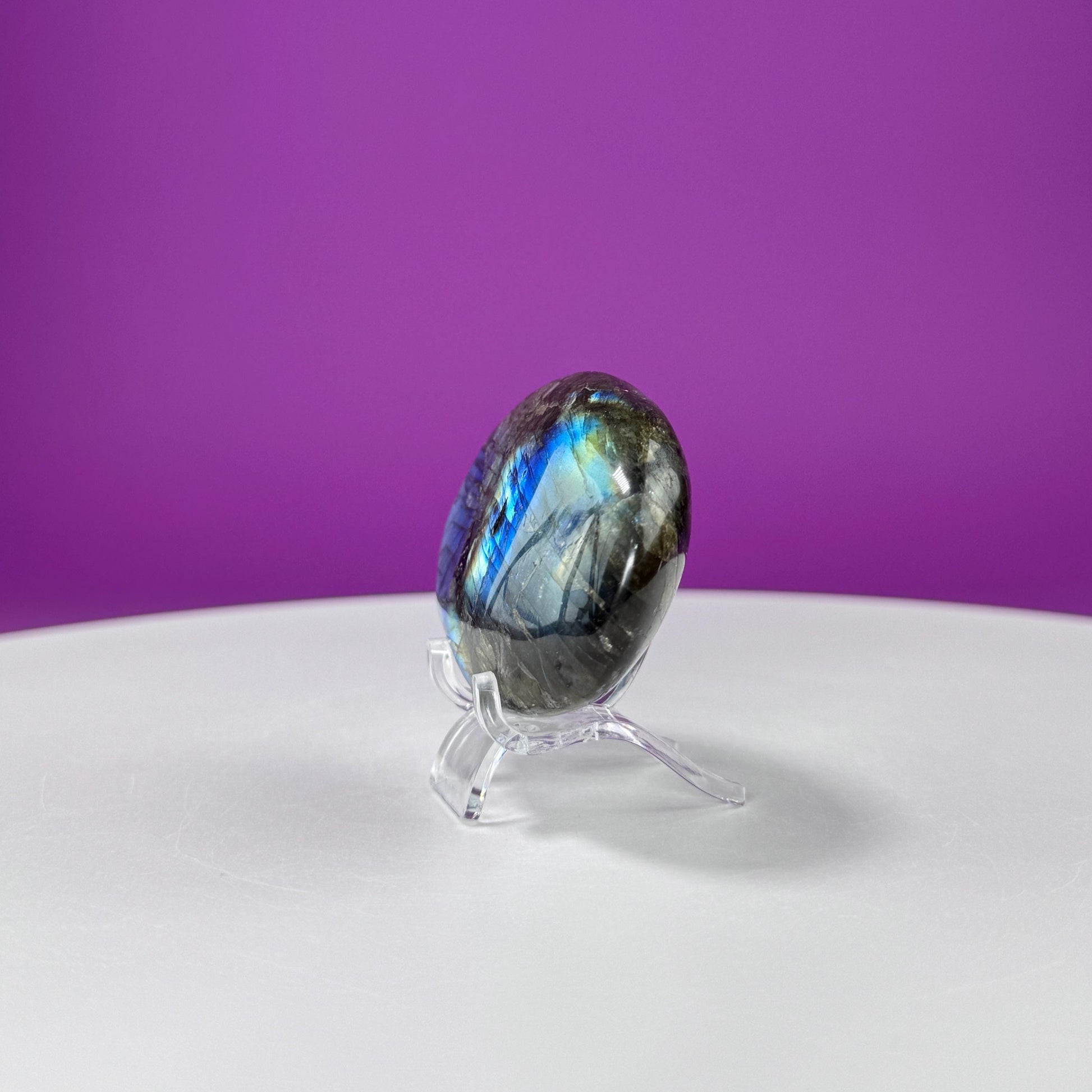 This listing is for one (1) polished Labradorite Palm Stone (STAND NOT INCLUDED). The one in the photograph is the one you receive.