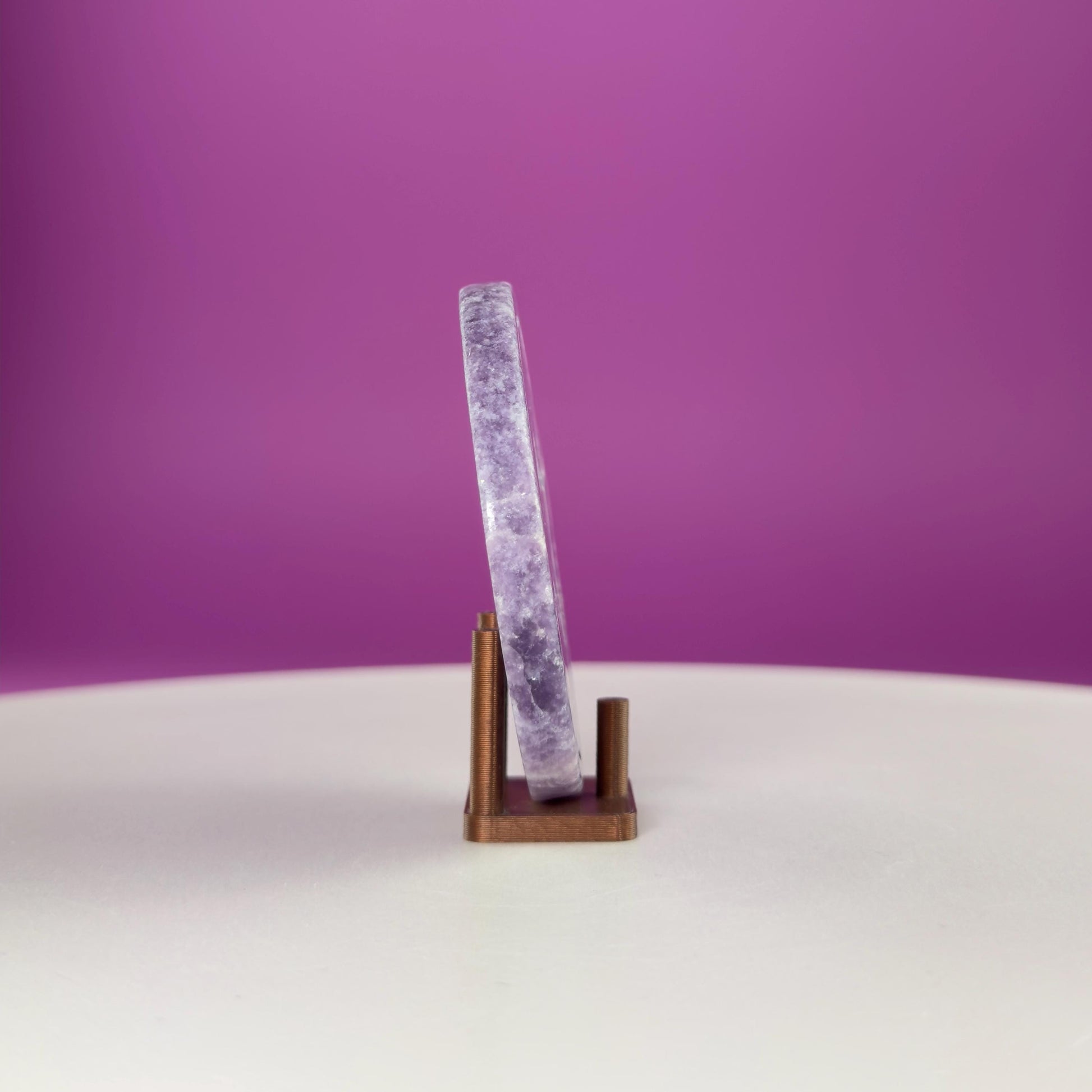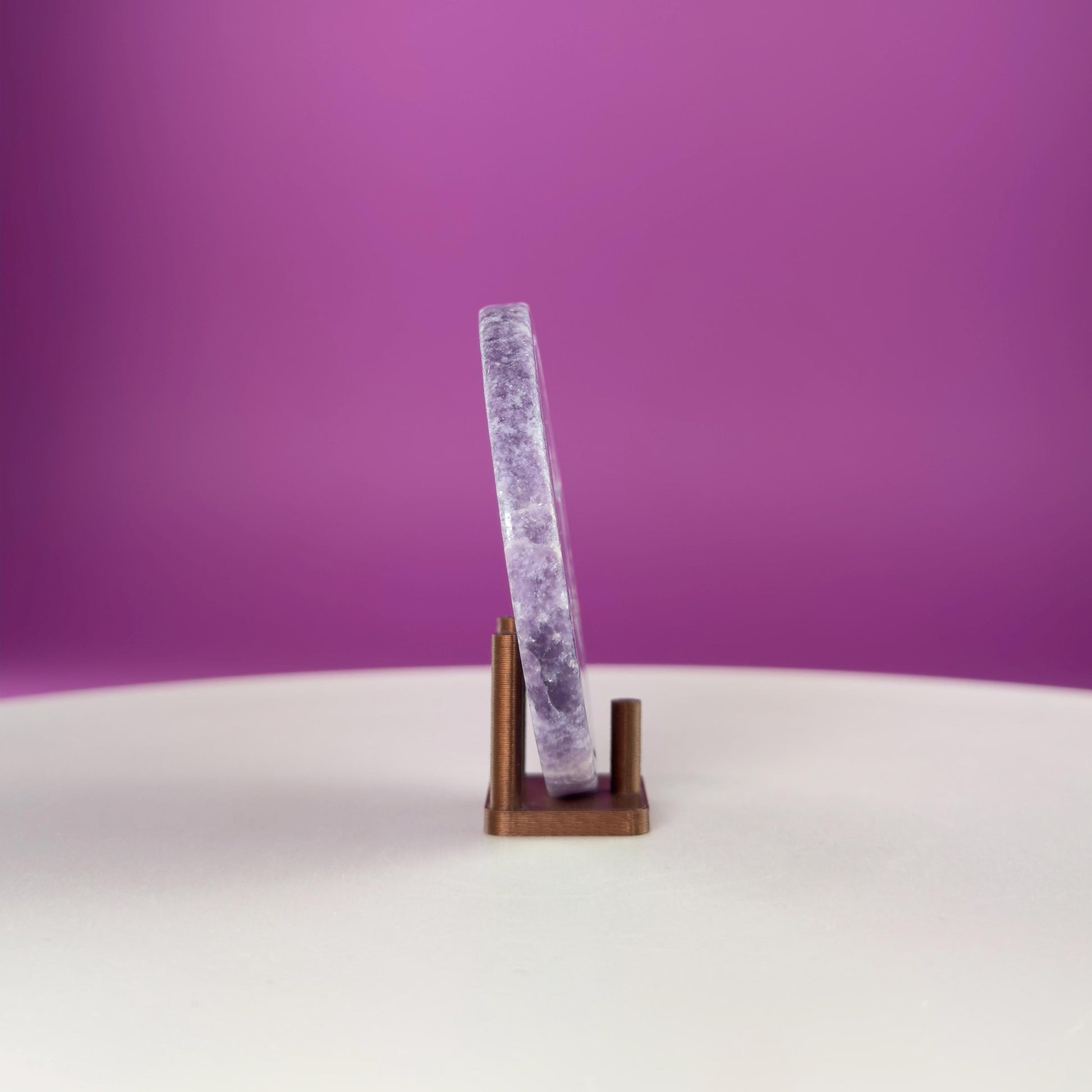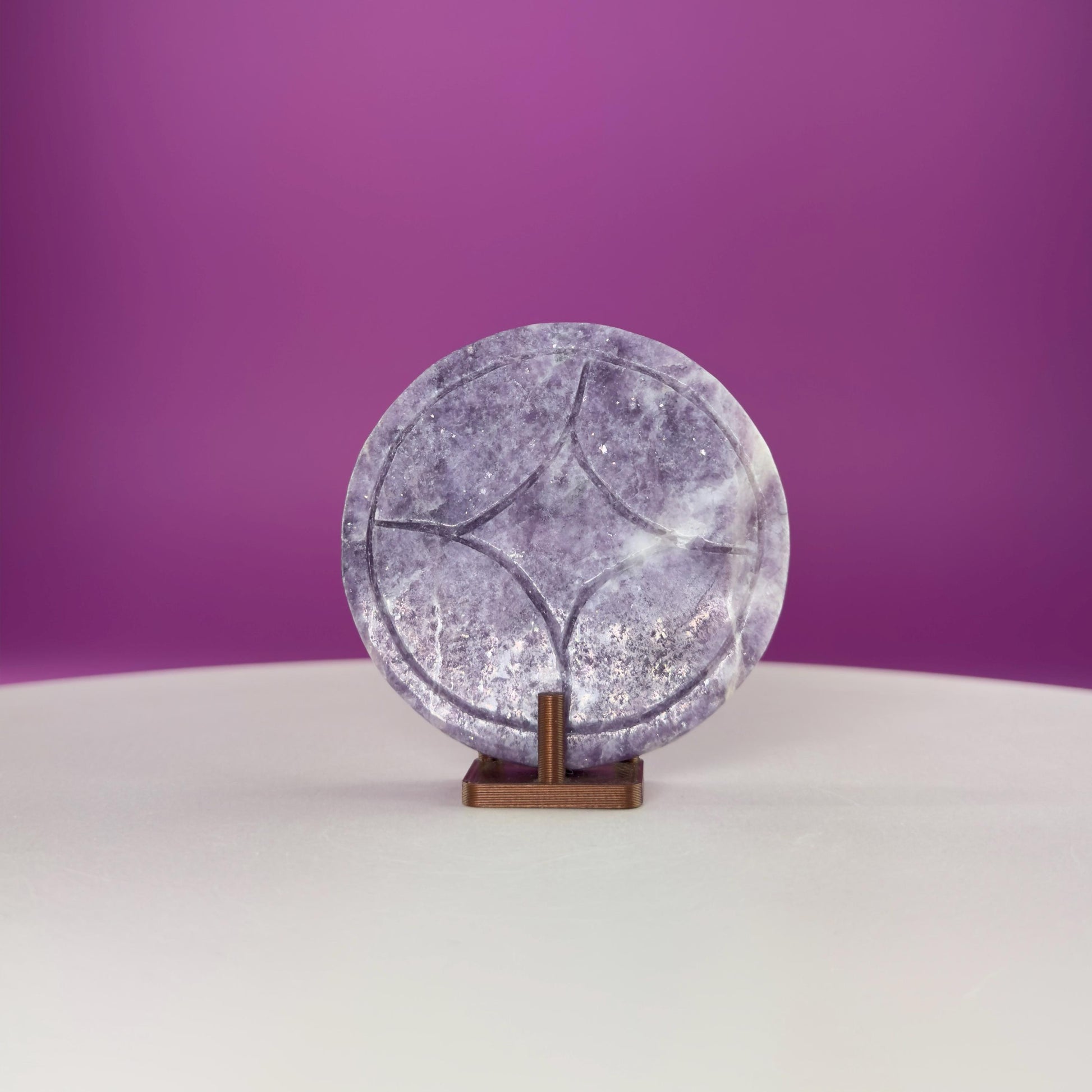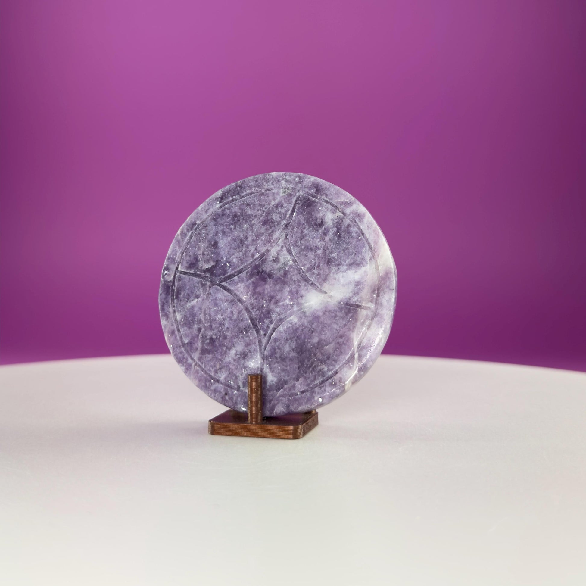 At 66 grams, this coin fits comfortably in the hand, making it ideal for palm meditation, altar displays, desk décor, or crystal grids. Lepidolite’s soft lavender tones shimmer with natural mica inclusions, giving each piece a gentle sparkle and soothing visual appeal.