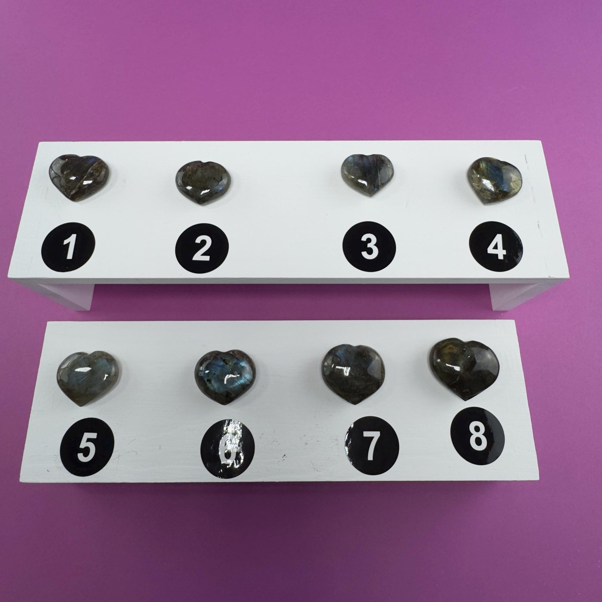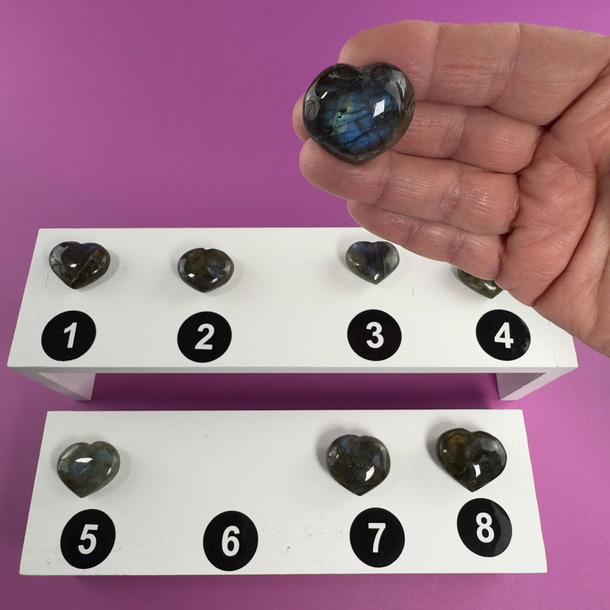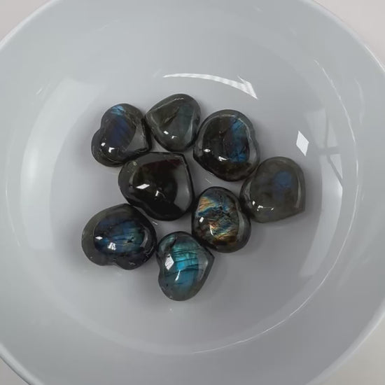 This listing is for one (1) mini Labradorite Heart carving, intuitively selected, your choice of size.