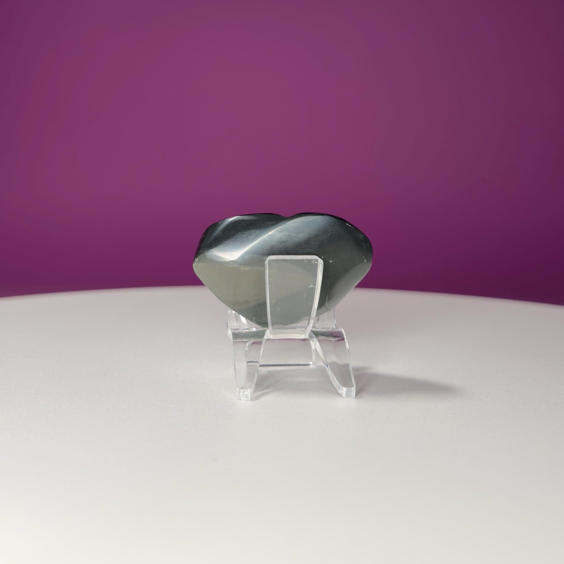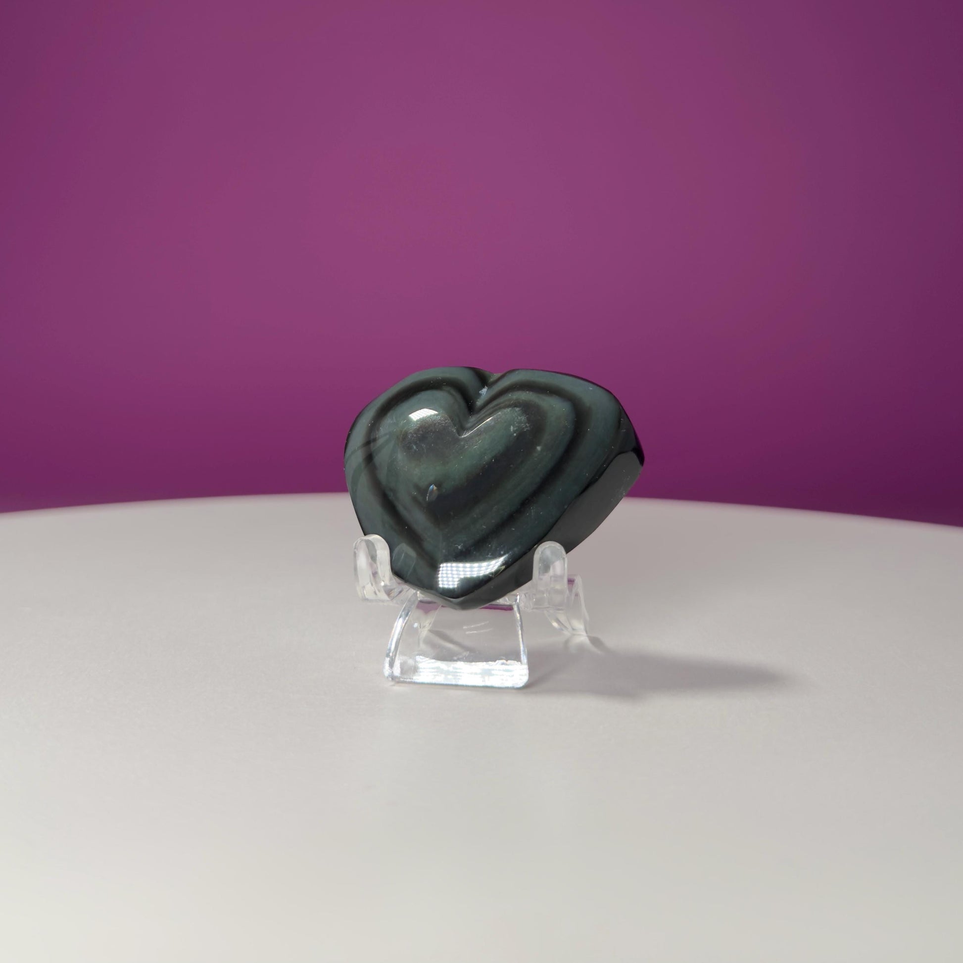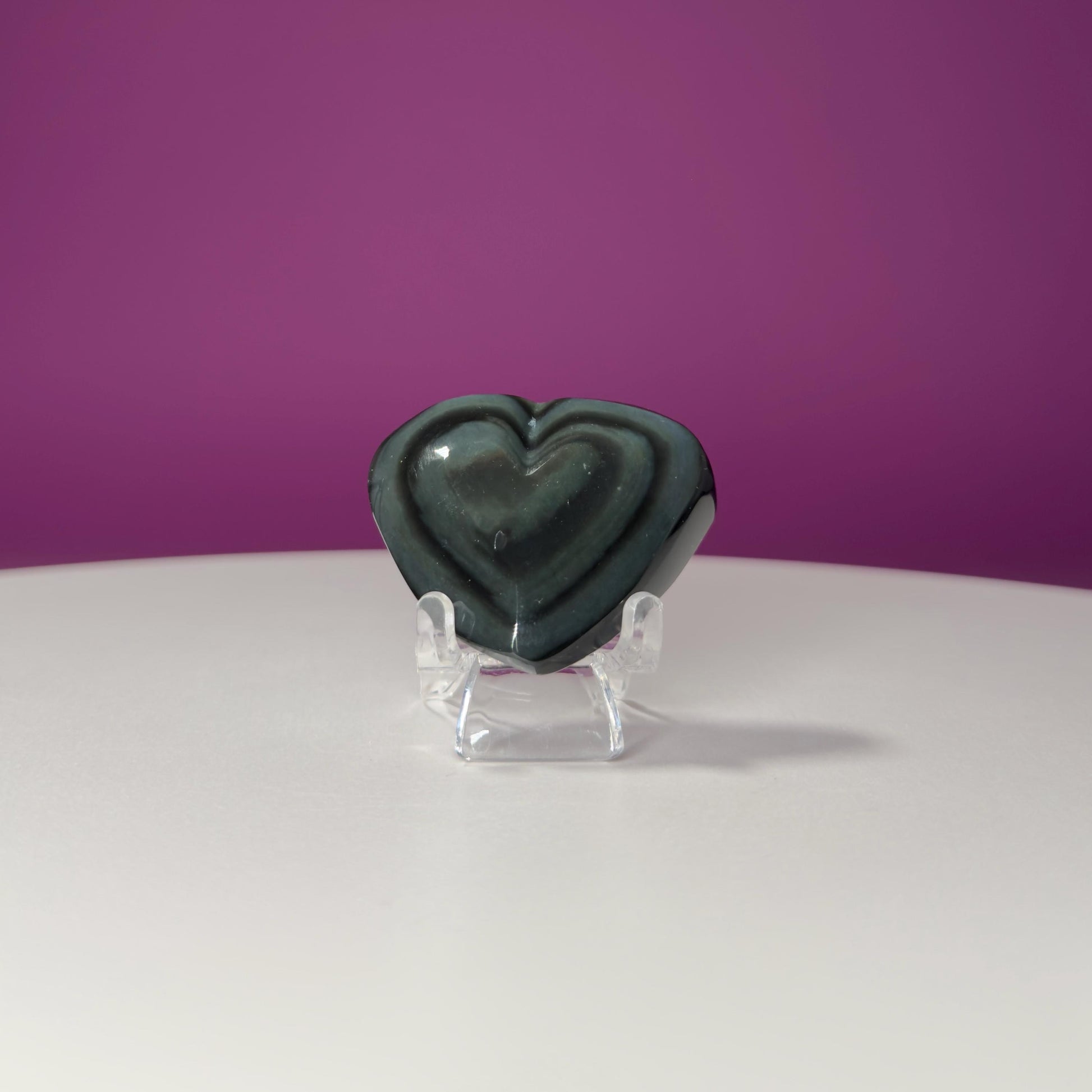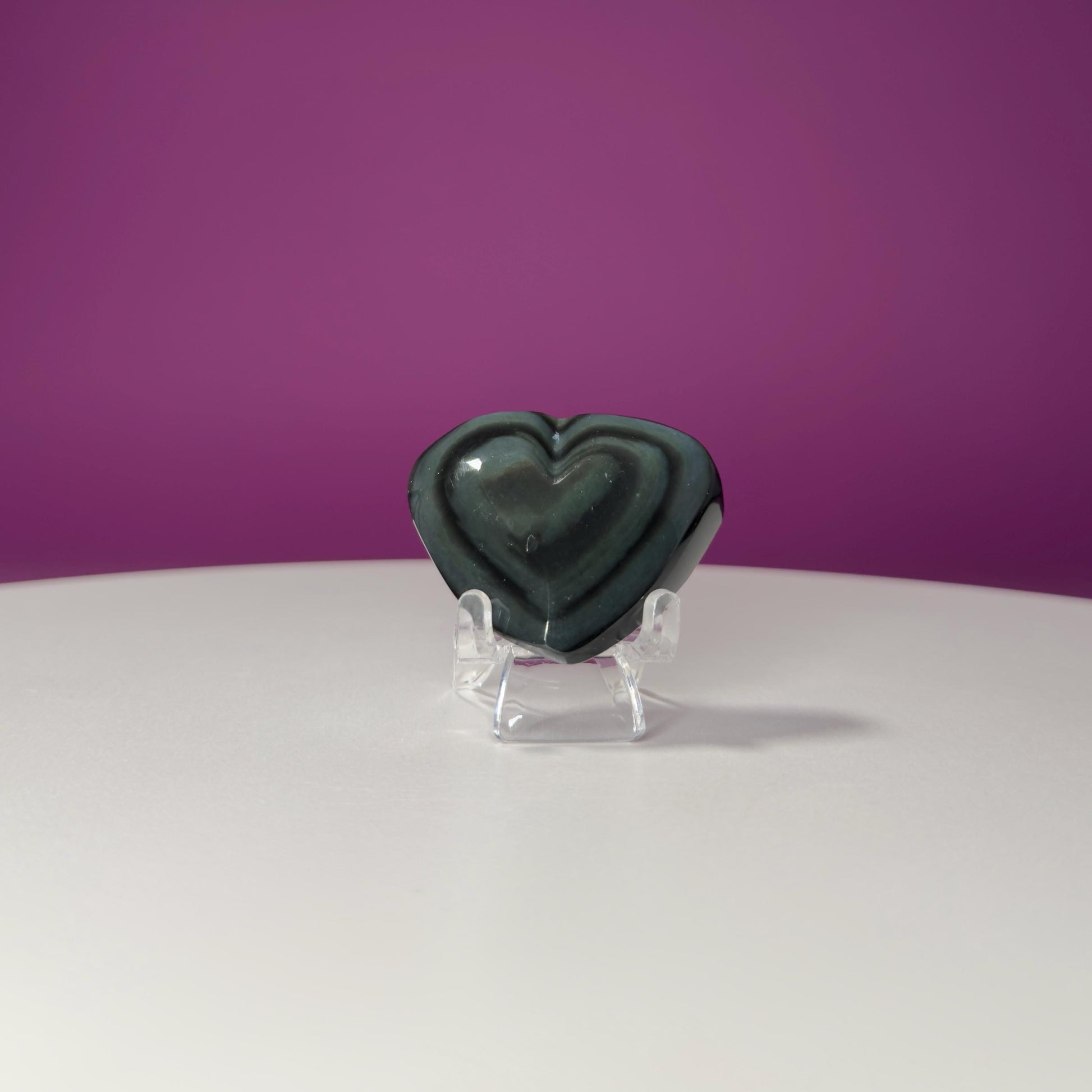 This listing is for one (1) mini–Rainbow Obsidian Heart Carving. STAND FOR DISPLAY PURPOSES ONLY. The one in the photograph is the one you receive.