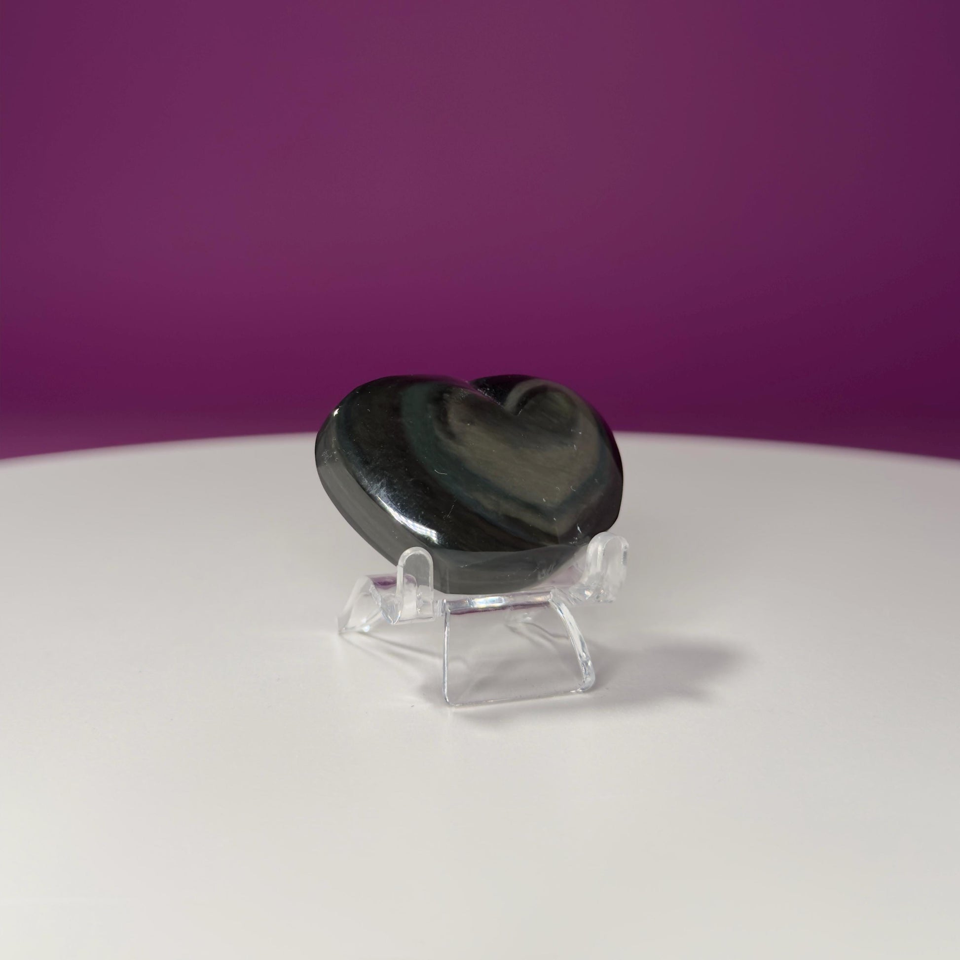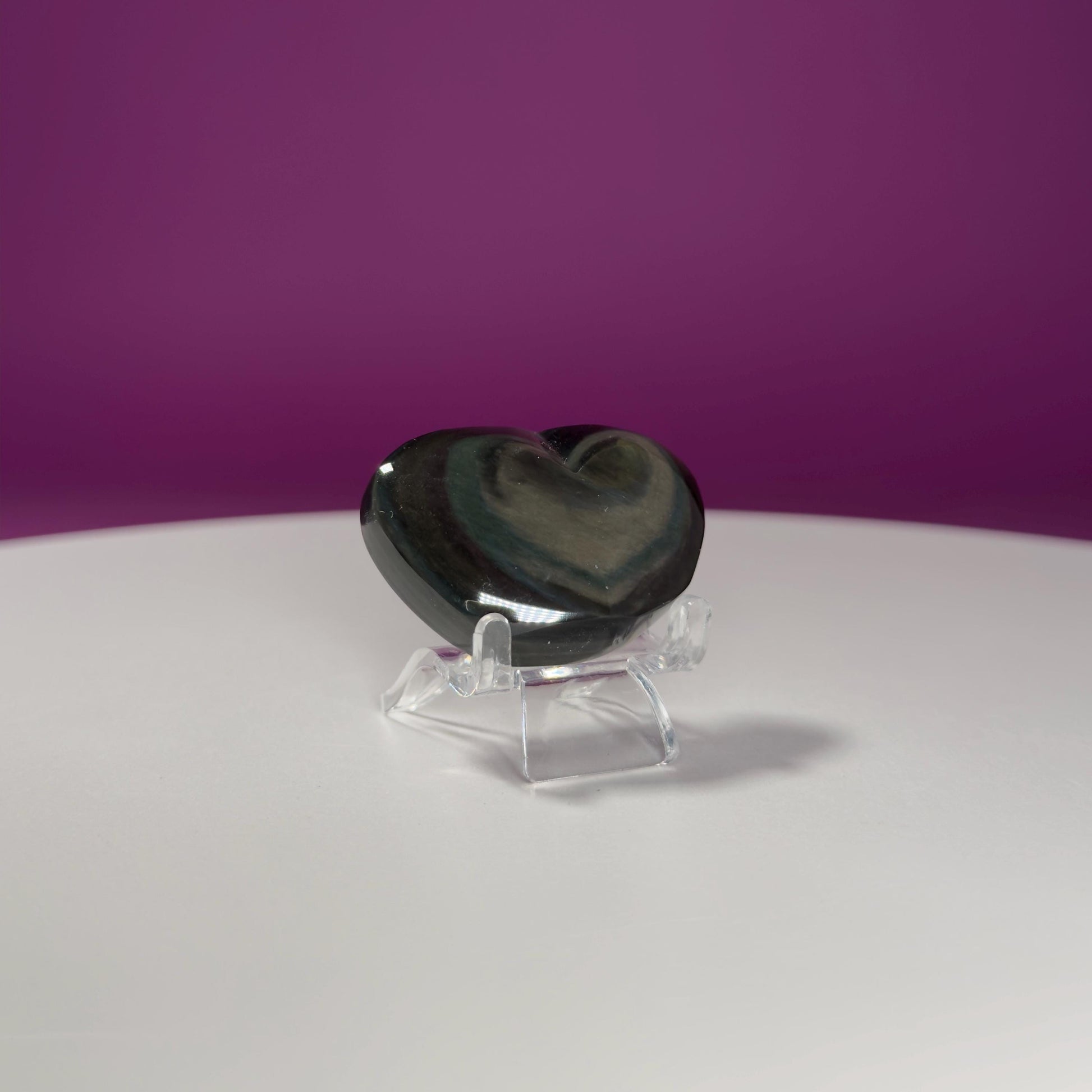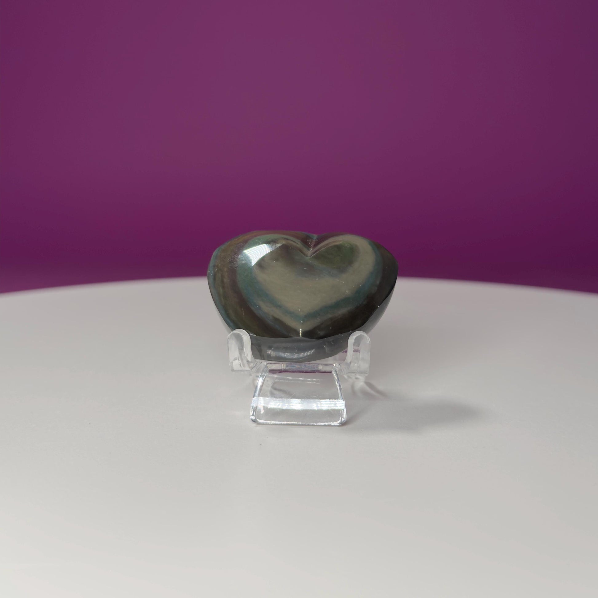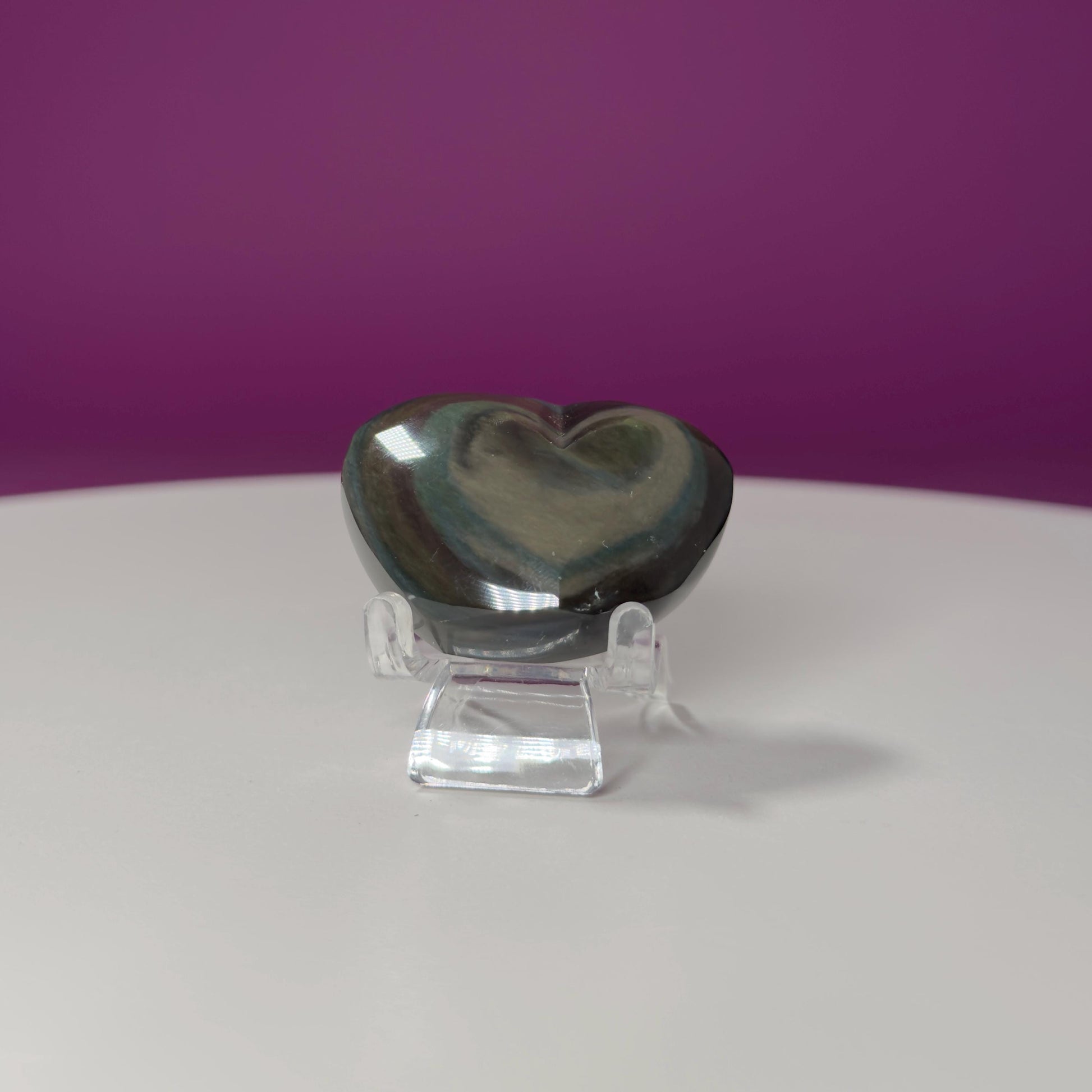 This listing is for one (1) mini–Rainbow Obsidian Heart Carving. STAND NOT INCLUDED - FOR DISPLAY PURPOSE ONLY. The one in the photograph is the one you receive.