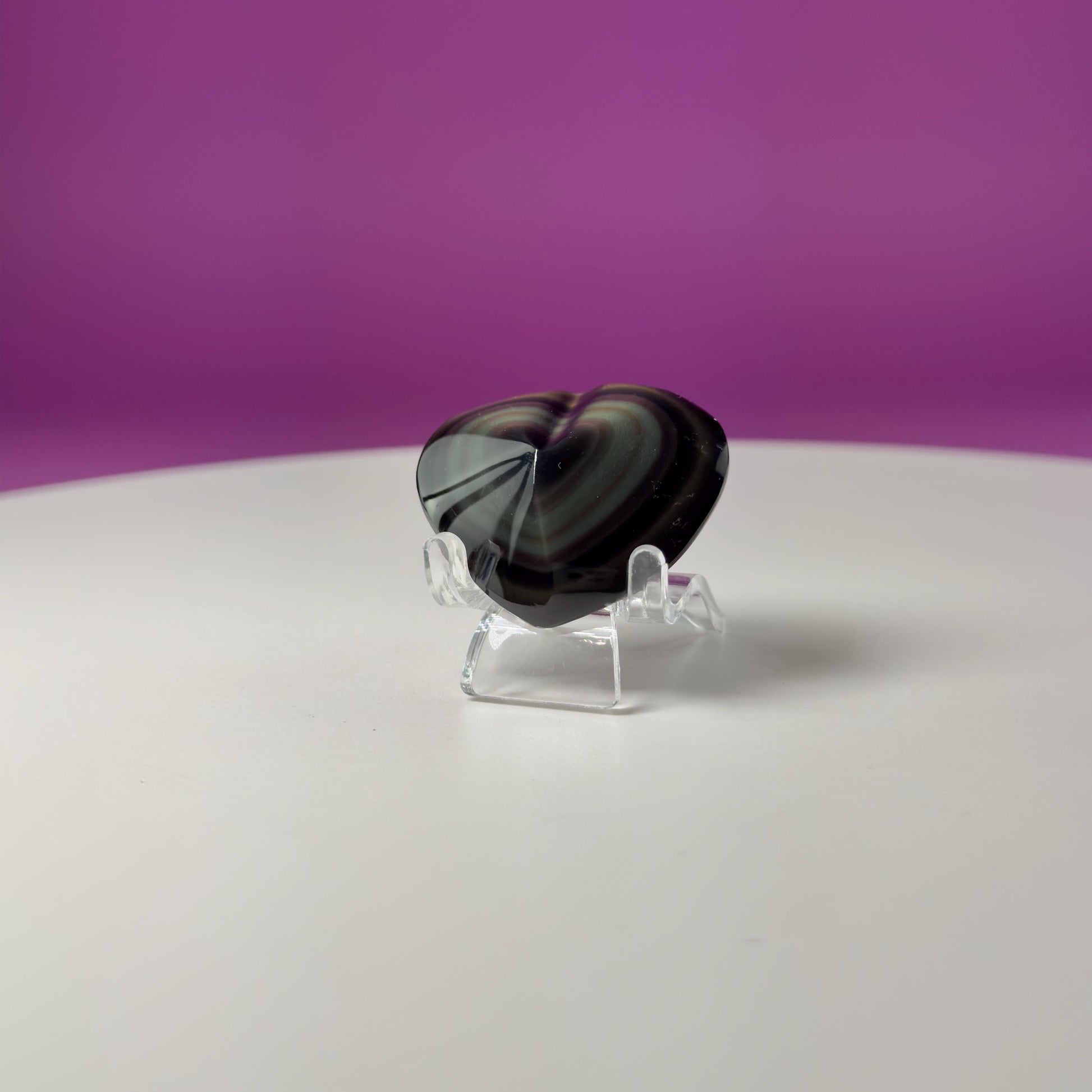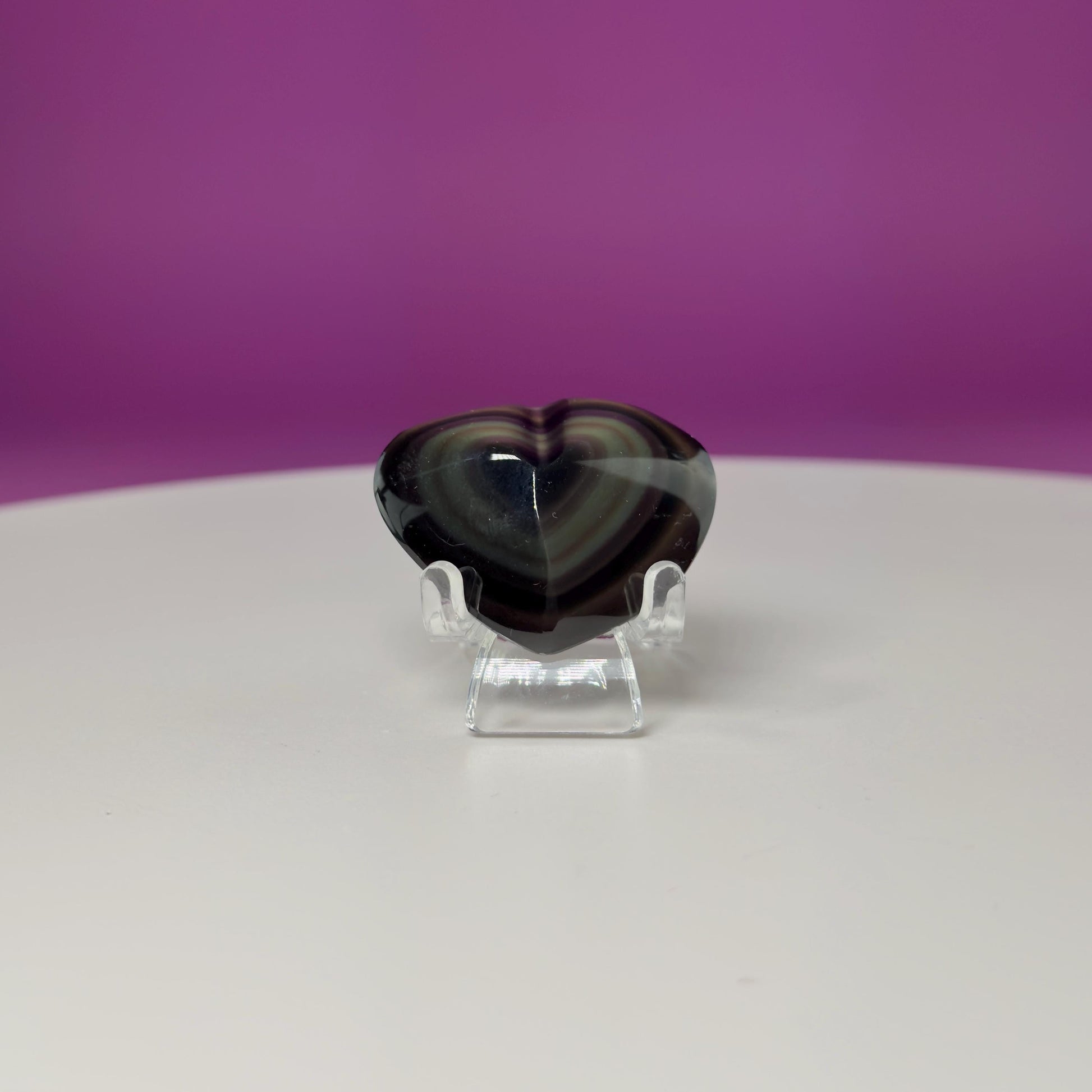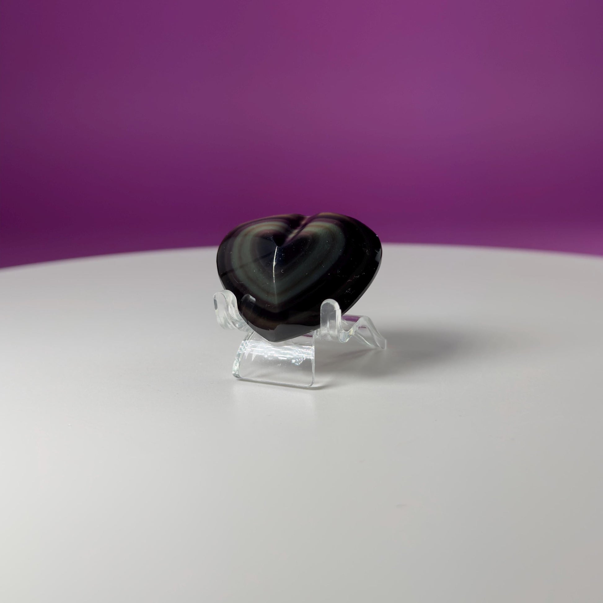 This listing is for one (1) mini–Rainbow Obsidian Heart Carving. STAND NOT INCLUDED - FOR DISPLAY PURPOSES ONLY. The one in the photograph is the one you receive.