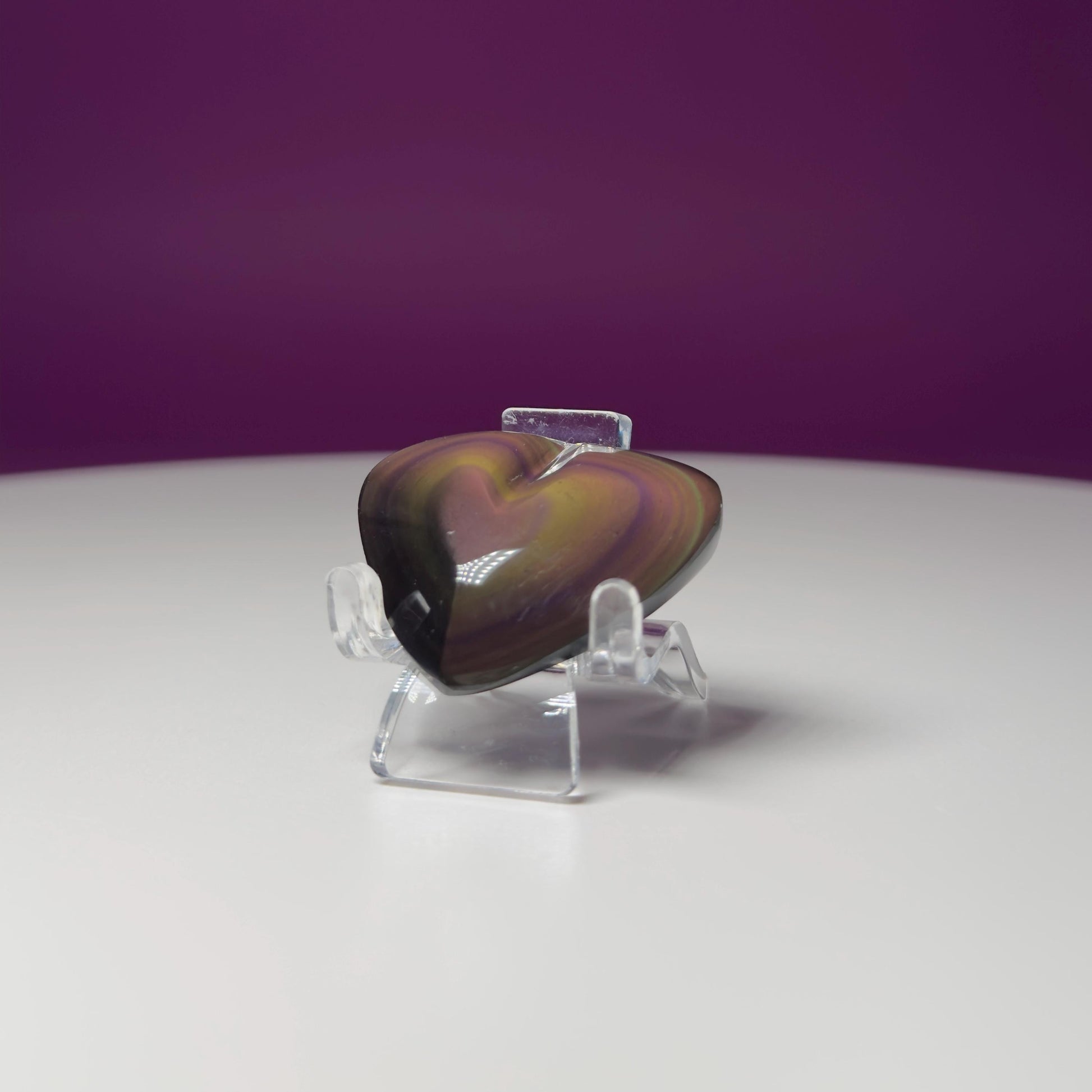 This listing is for one (1) mini–Rainbow Obsidian Heart Carving. STAND NOT INCLUDED - FOR DISPLAY PURPOSE ONLY. The one in the photograph is the one you receive.