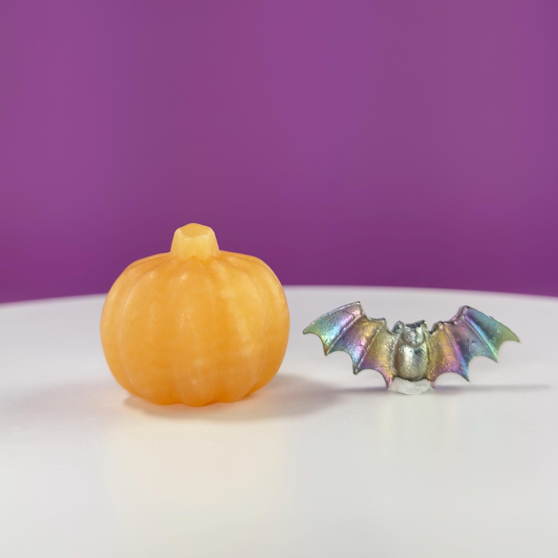 Get into the spooky spirit with our brand-new crystal carvings! Introducing the vibrant Orange Calcite Pumpkin and the dazzling Aura Bismuth Bat. These unique pieces are perfect for adding a touch of festive fun and powerful energy to your collection.