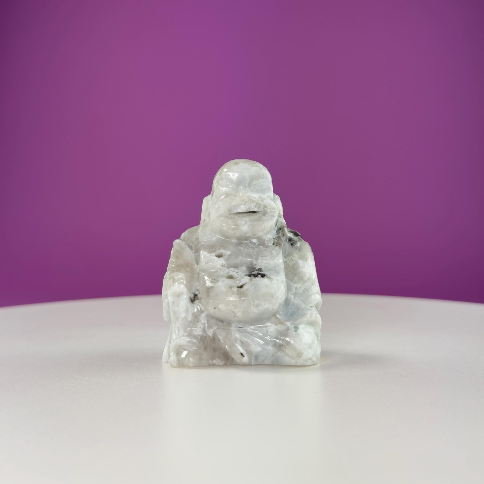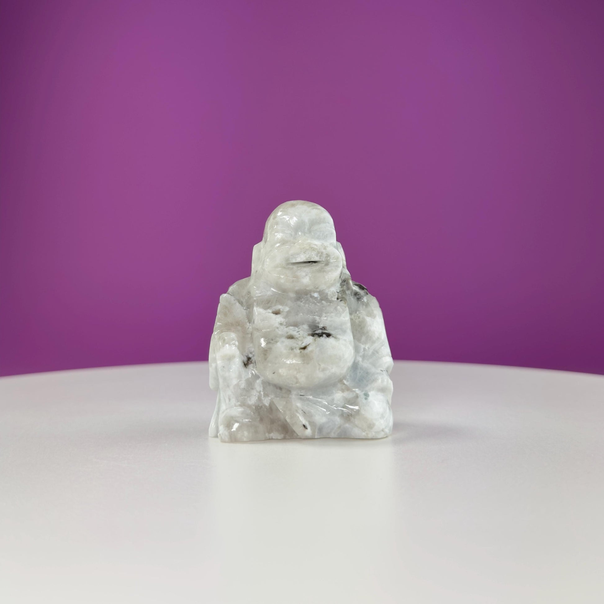 This listing is for one (1) polished Rainbow Moonstone Buddha carving. The one in the photograph is the one you receive.