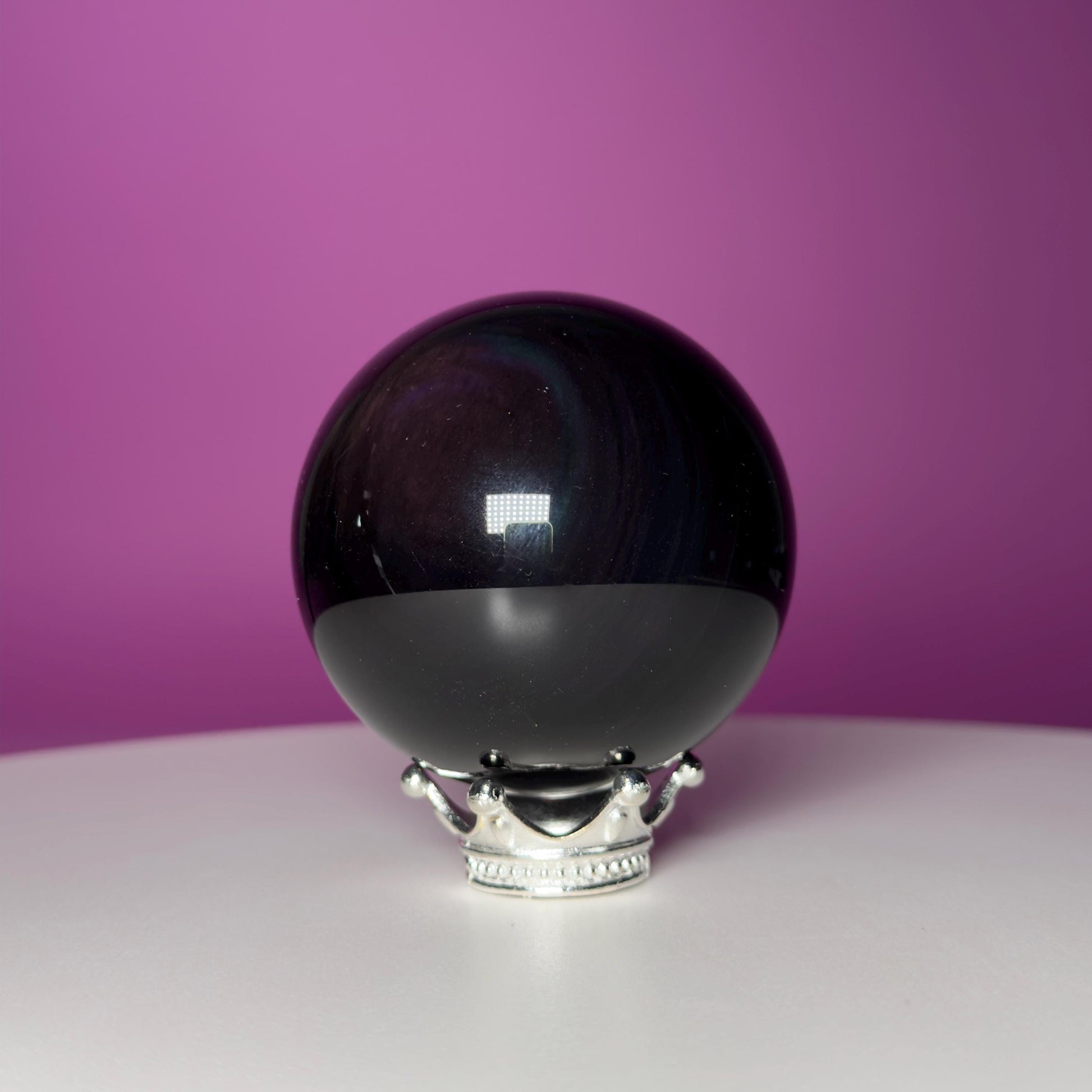 Discover the hidden beauty of our Rainbow Obsidian Sphere! This stunning sphere is crafted from volcanic glass that, at first glance, appears to be a deep, glossy black. But hold it up to the light, and you‘ll be treated to a secret show of iridescent colors—layers of purple, green, and gold that shimmer from within. It’s like holding a little piece of the night sky, complete with its own hidden galaxy!