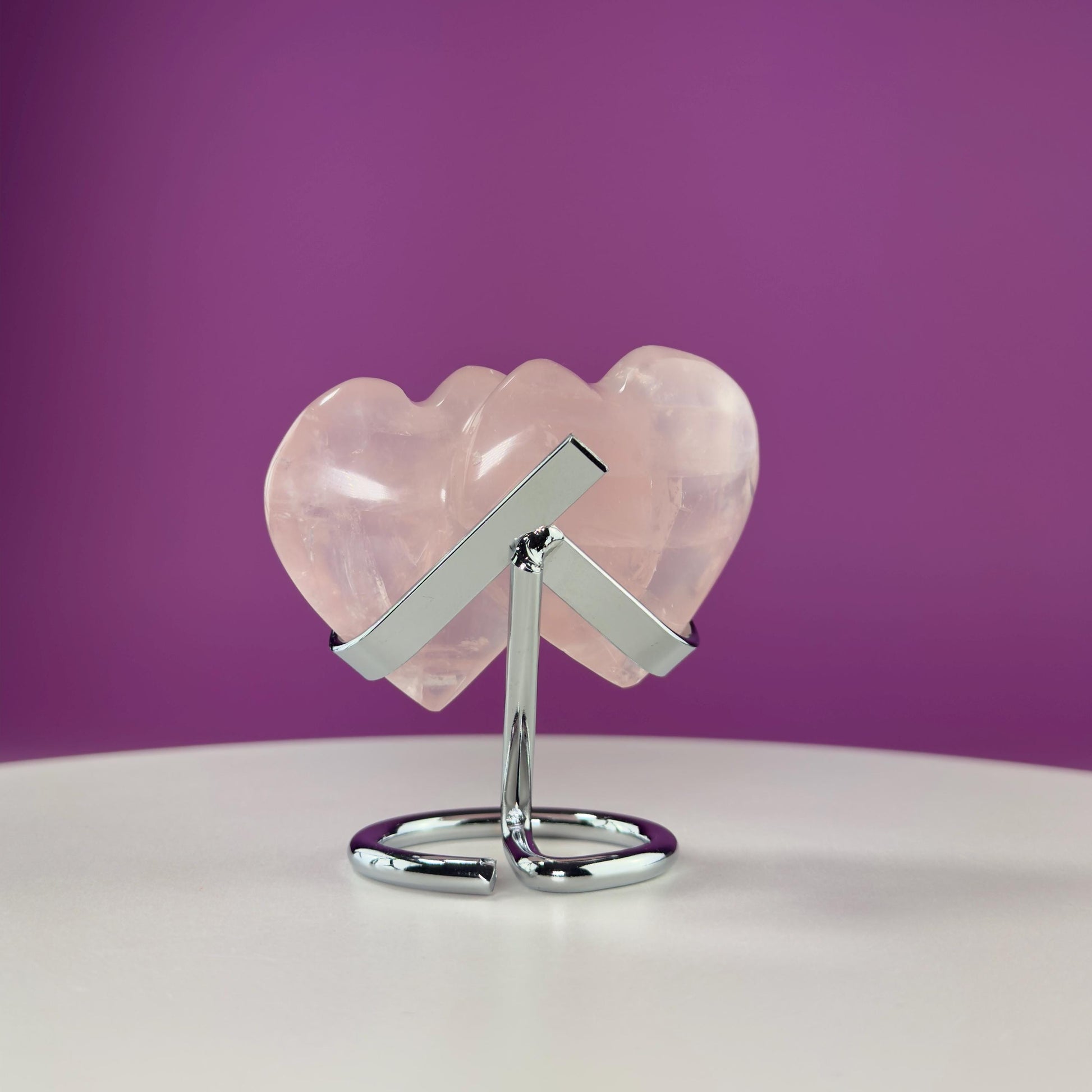 Rose Quartz Double Heart (Mexico) (Includes Silver Metal Stand)