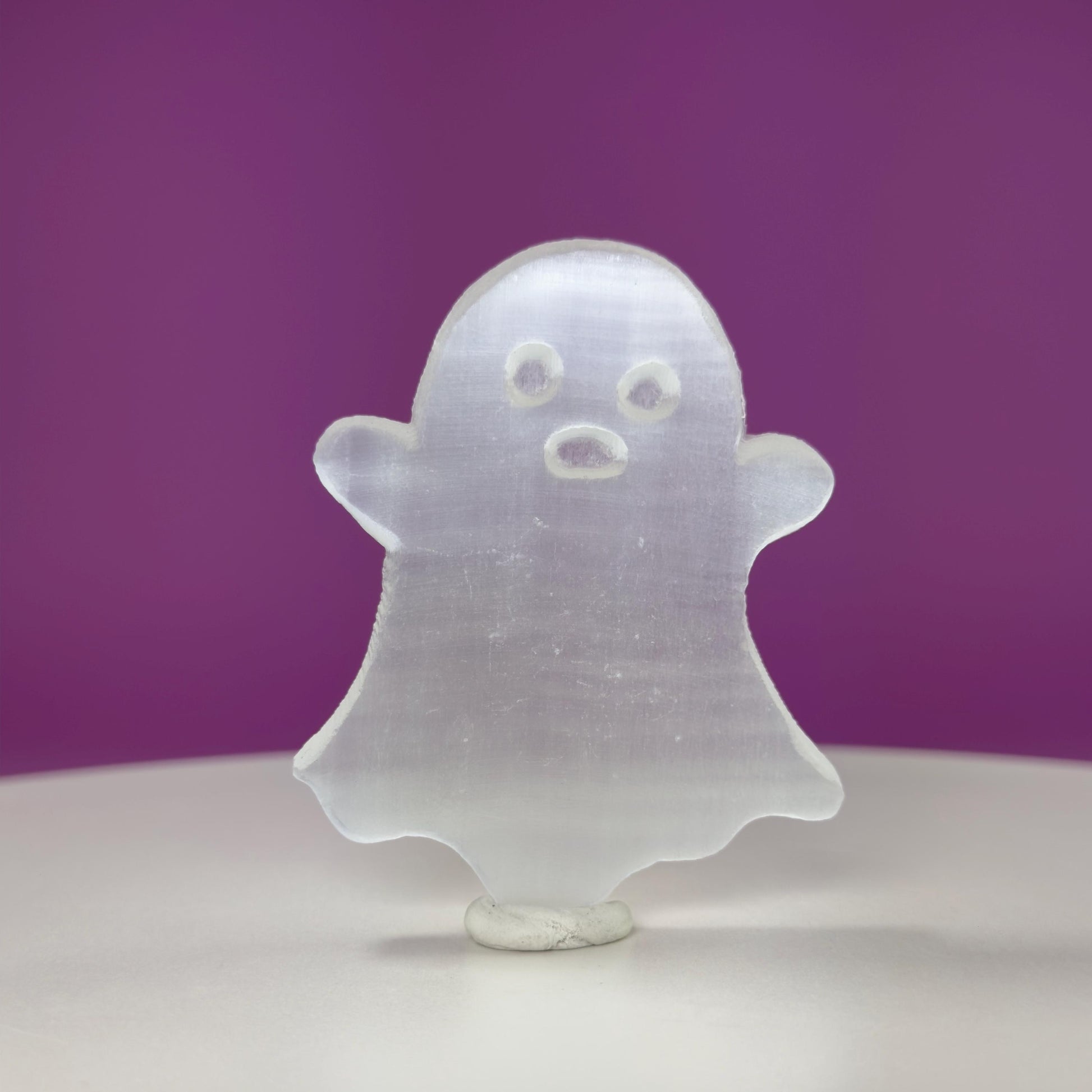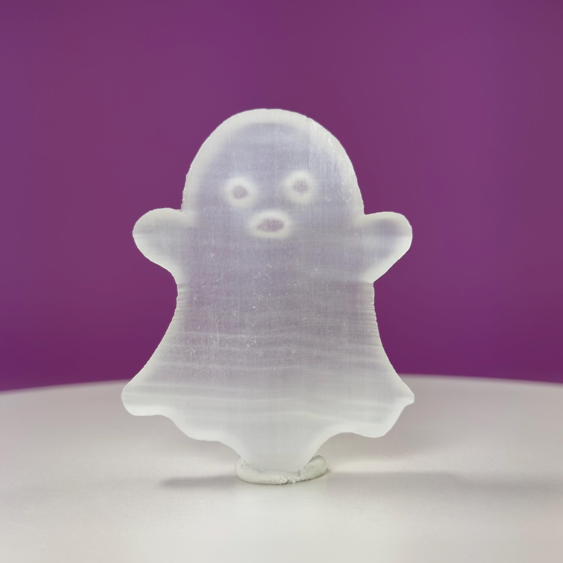 Transform your space with the ethereal beauty of our Selenite Ghost Carving! This stunning piece showcases selenite‘s natural translucent white appearance, carved into a playful ghost form that seems to glow with inner light. Each carving is unique, featuring selenite‘s characteristic fibrous structure that creates mesmerizing patterns throughout the piece. Known for its powerful cleansing and protective properties, selenite is believed to clear negative energy from your environment while promoting peace and mental clarity. Place this enchanting ghost carving on your desk, nightstand to create a serene focal point that elevates any room‘s energy. The smooth, polished surface feels wonderful to the touch, making it perfect for meditation or simply as a beautiful decorative accent. Whether you‘re drawn to its spiritual significance or captivated by its fun appearance, this Selenite Ghost Carving brings a touch of magic and tranquility to your daily life!