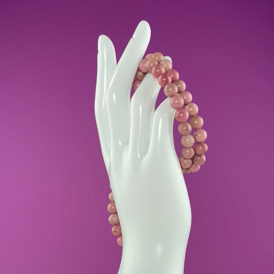 Thulite Beaded Bracelet 8 Millimeter-Rare Pink Zoisite Crystal Jewelry