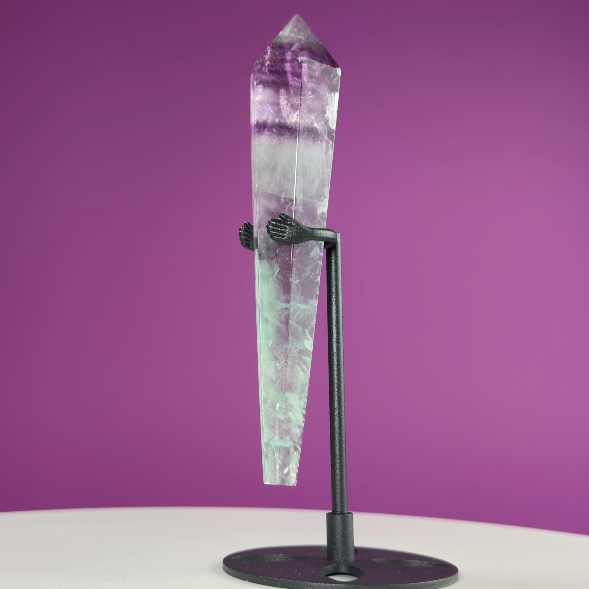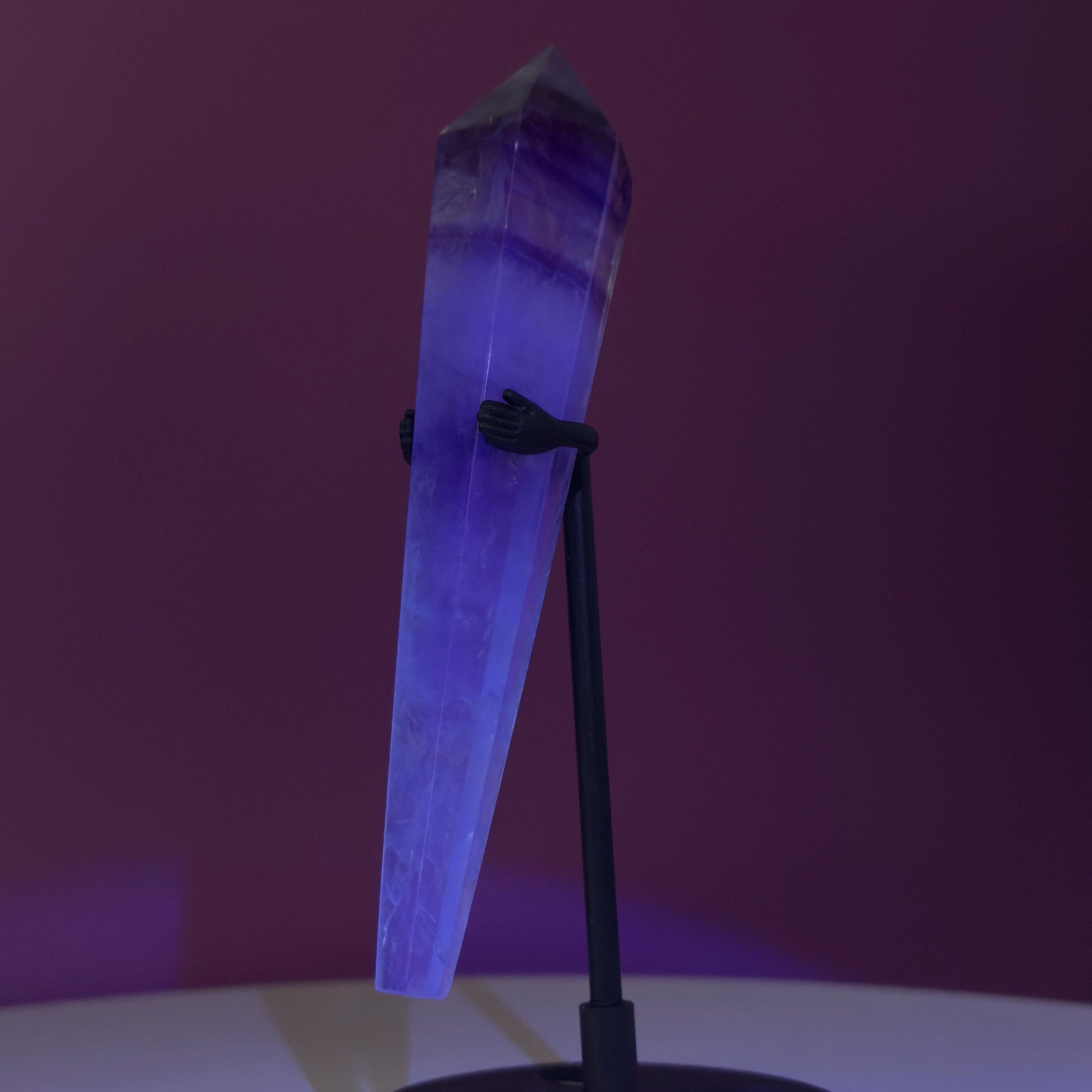 Watermelon Fluorite Scepter and Black Metal Stand, UV Reactive