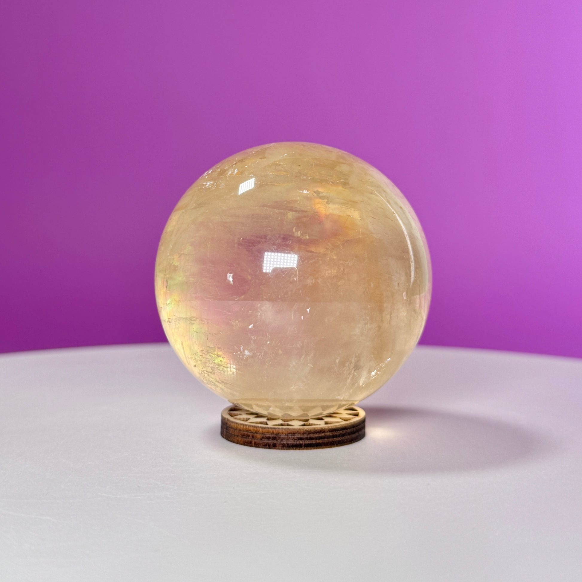 Honey Calcite Sphere (Includes Decorative Wood Stand)